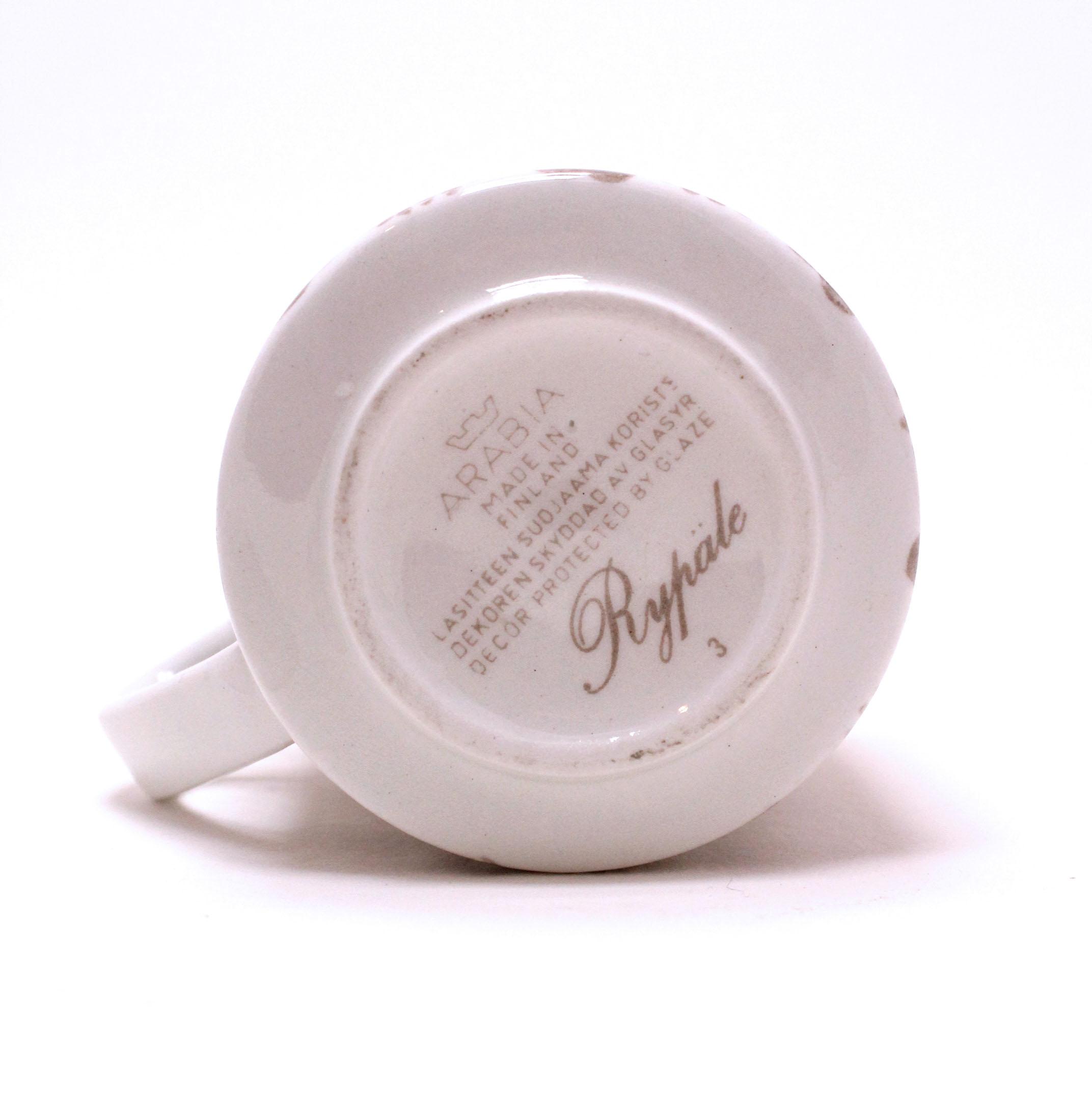 Arabia Rypäle Coffee Cup. Designer: Raija Uosikkinen. Made by: Arabia, Finland. Size: height 65mm diameter 60mm. Year: 1969-1972. Very good condition, few very small surface scratches.