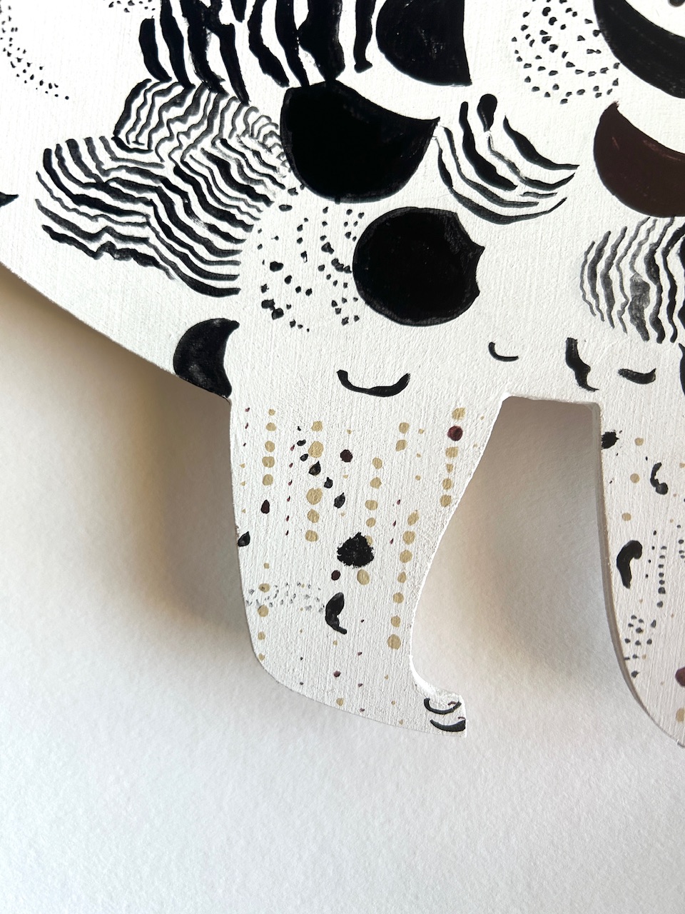 Akryyliväri vanerille, L37cm, K21cm. Signeerattu. Takana seinäkiinnike. Acrylic color on plywood, W37cm, H21cm. Signed. On the back: wooden block with hook.