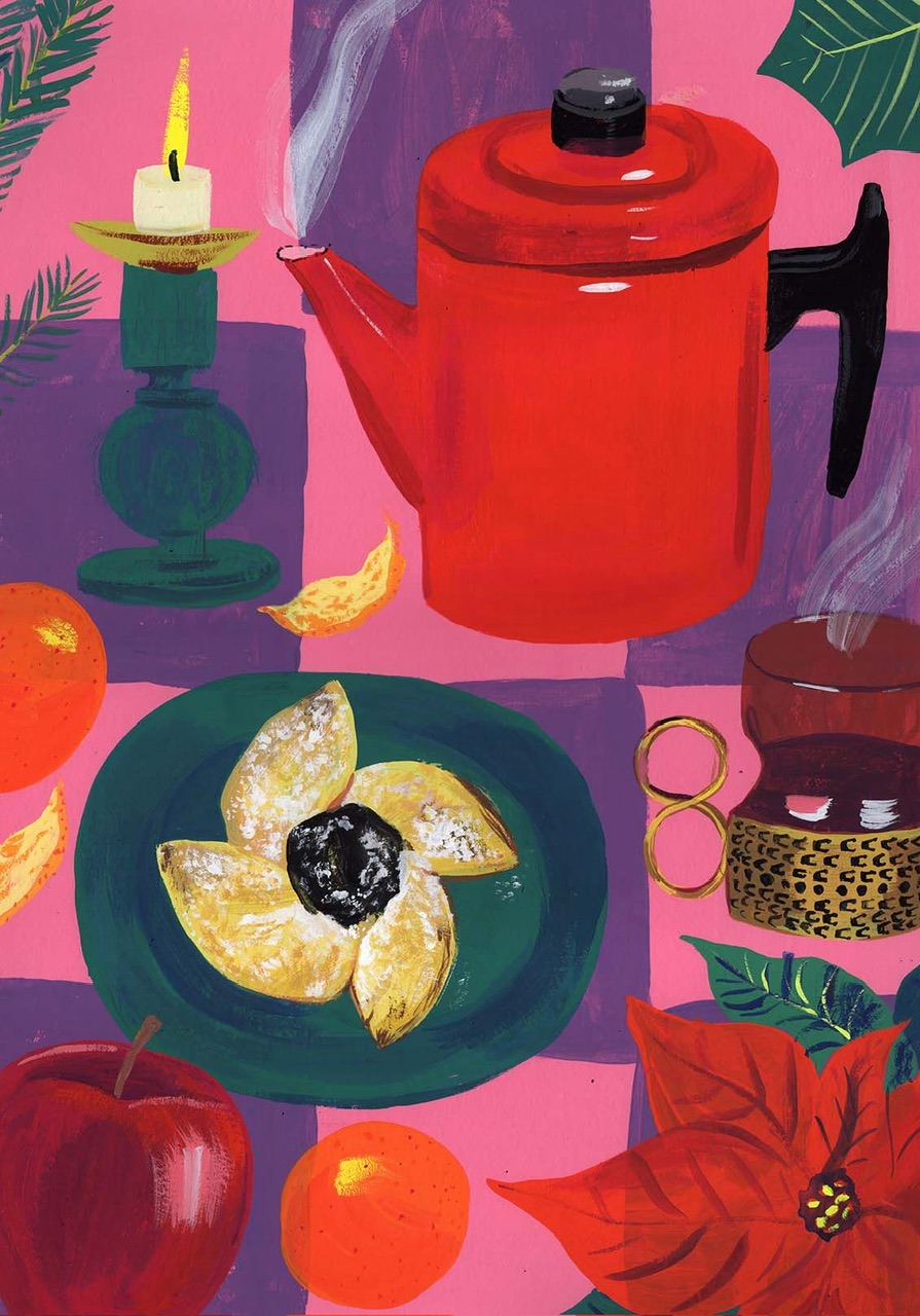 Kuvitusoriginaali Kehvolan kalenteriin. Akryyliväri 500g paperille. Koko 36x48cm. Original illustration for Kehvola calemdar, Acrylic color on 500g paper. Size 36x480cm.