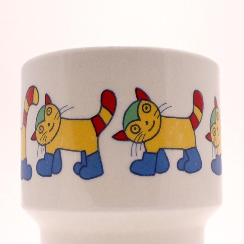 Arabia Cat mug by Laila Hakala. Material: Faience. Designer: Laila Hakala Year: 1970-1973 Made by: Arabia, Finland. Size: Height 90mmmm / Diameter 75mm Very good condition.