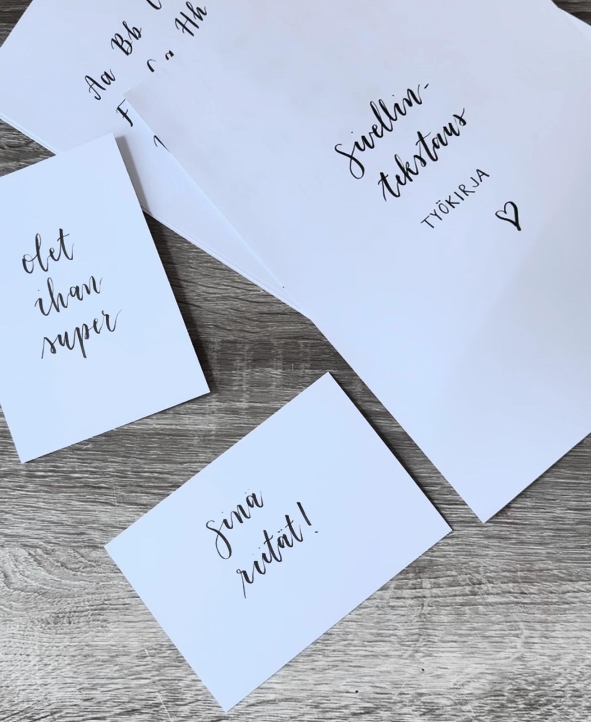 Opit harjoituskirjan avulla sivellintekstauksen alkeet, joiden avulla opit kaiken tarvittavan tehdäksesi itse esimerkiksi kauniit tekstit kortteihin (esim. Onnittelukortit, paikkakortit juhliin). Pääset harjoittelemaan sivellintekstausta kirjainten ja mallisanojen avulla. Paketti sisältää myös erilaisia tyyliesimerkkejä, vinkkejä ja extrana feikkikalligrafian opastus.