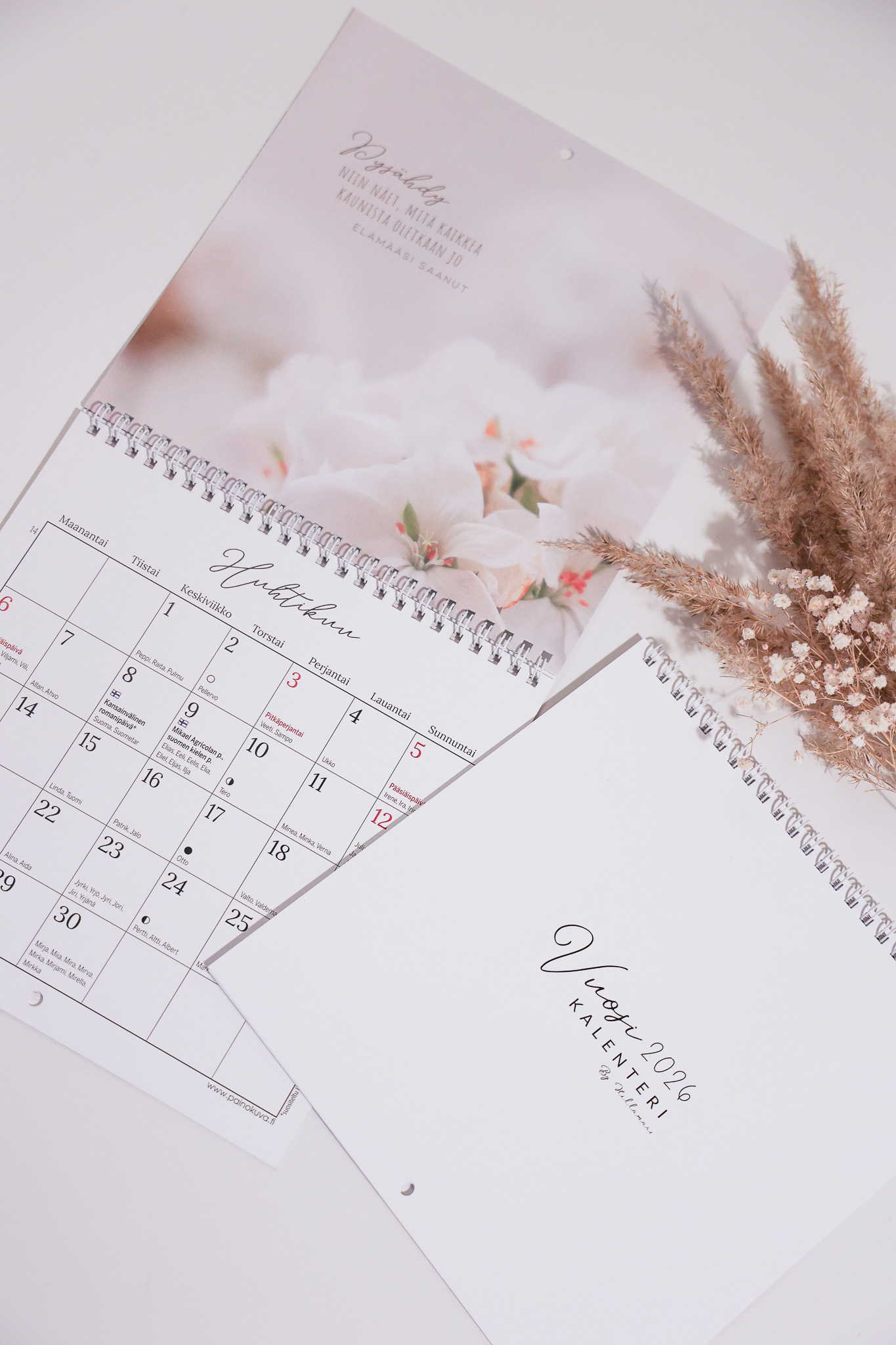 Kaunis seinäkalenteri 2026 – lempeyttä arkeen.