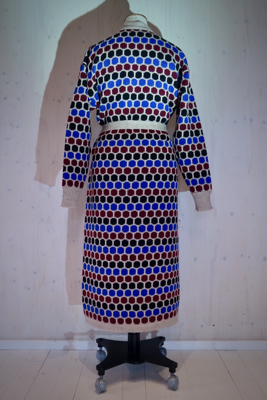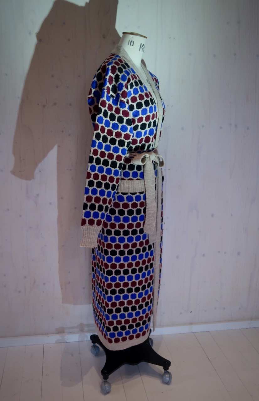 Mamaha’s GODETIA patterned cardigan is made of warm and soft merino wool. The jacket is straight and has a v-neckline and pockets on both sides at the front. The jacket can be fastened with a knitted belt. In the fall and spring, Godetia can be used as a jacket.