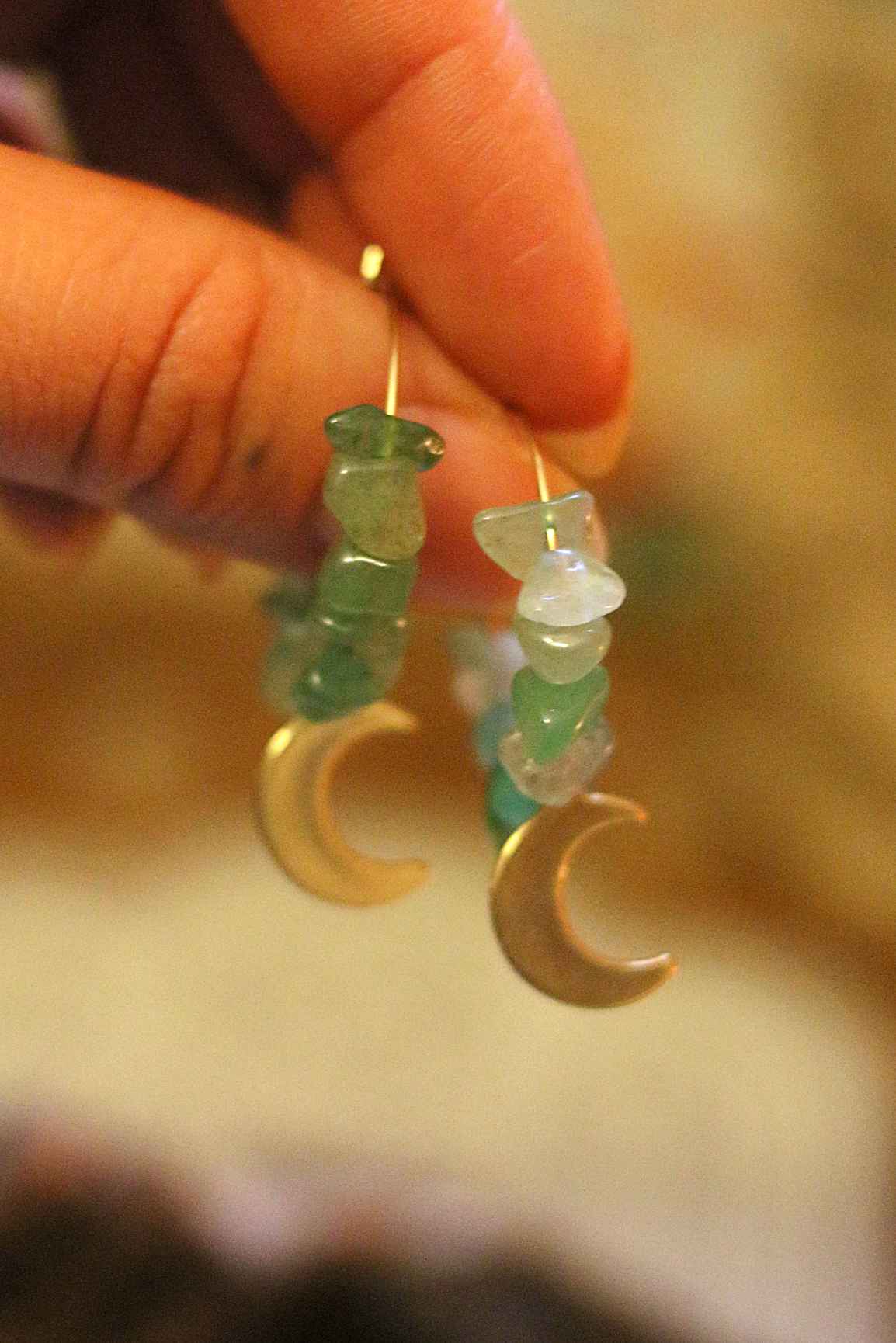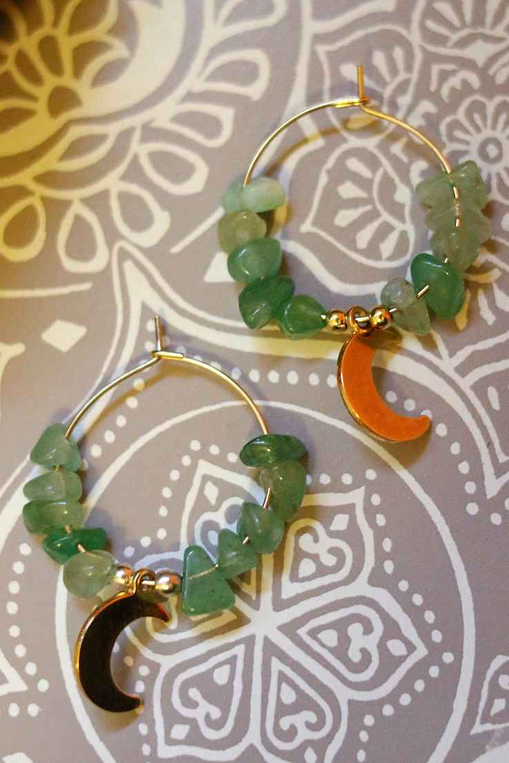 Luonnon rauhaa ja harmoniaa kantava koru, jossa vihreä aventuriini yhdistyy kultaisen väriseen kuun sirppiin. Aventuriini tuo tasapainoa ja positiivista energiaa, ja kuun sirppi lisää ripauksen taianomaisuutta arkeen. Vihreä aventuriini edistää tasapainoa ja harmoniaa elämässä sekä tukee positiivista ajattelua ja hyvää onnea.