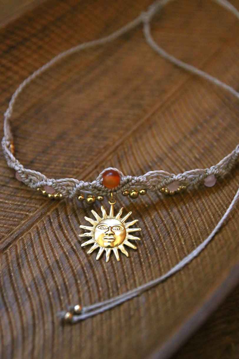 Choker -mallinen kaulakoru säädettävällä ympärysmitalla. Korua voi käyttää kaulakoruna tai hiuskoruna/otsakoruna. Karneoli tuo elämään vireyttä, elinvoimaa ja intohimoa. Se aktivoi sakraalichakraa. Ruusukvartsi tasapainottaa sydänchakraa. Se on lempeä rakkauden kivi joka säteilee ympärilleen rakkautta ja empaattista energiaa. Materiaalina: vahattu polyesterinaru, messinkiset korunosat sekä karneoli ja ruusukvartsi. HUOM! Voit valita tuotteelle joko noudon kivijalkaliikkeestä (Kirkkokatu 2, Vihreä Huone, Oulu) tai postituksen kotimaahan. Jos valitset postituksen, lisää ostoskoriin Toimitukset kategoriasta "pieni toimitus kotimaa XXS". Ostat siis 2 tuotetta: sekä korun että postituksen sille. Jos sinulle tulee kysyttävää, voit laittaa viestiä instagramissa @bypetrakatariina tai sähköpostia: bypetrakatariina@gmail.com