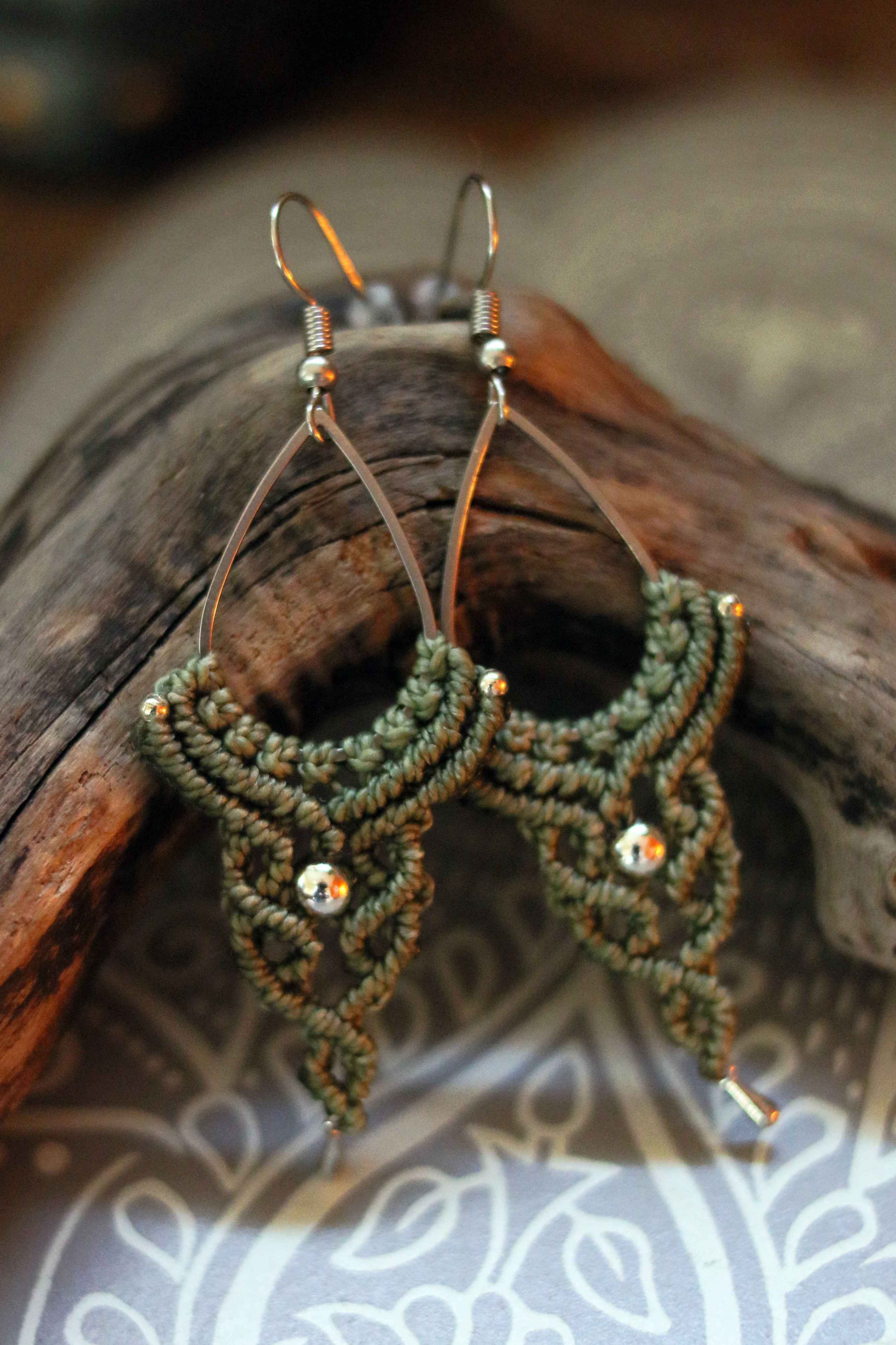 Akryylihelmiä sisältävät korut nyt poistohinnalla! Makramee tekniikalla valmistetut korvakorut vaaleanvihreällä langalla ja hopeisilla korunosilla. Materiaalina vahattu puuvillanaru, teräsosat sekä akryylihelmet. Koko noin 3 cm x 6 cm (+koukku).