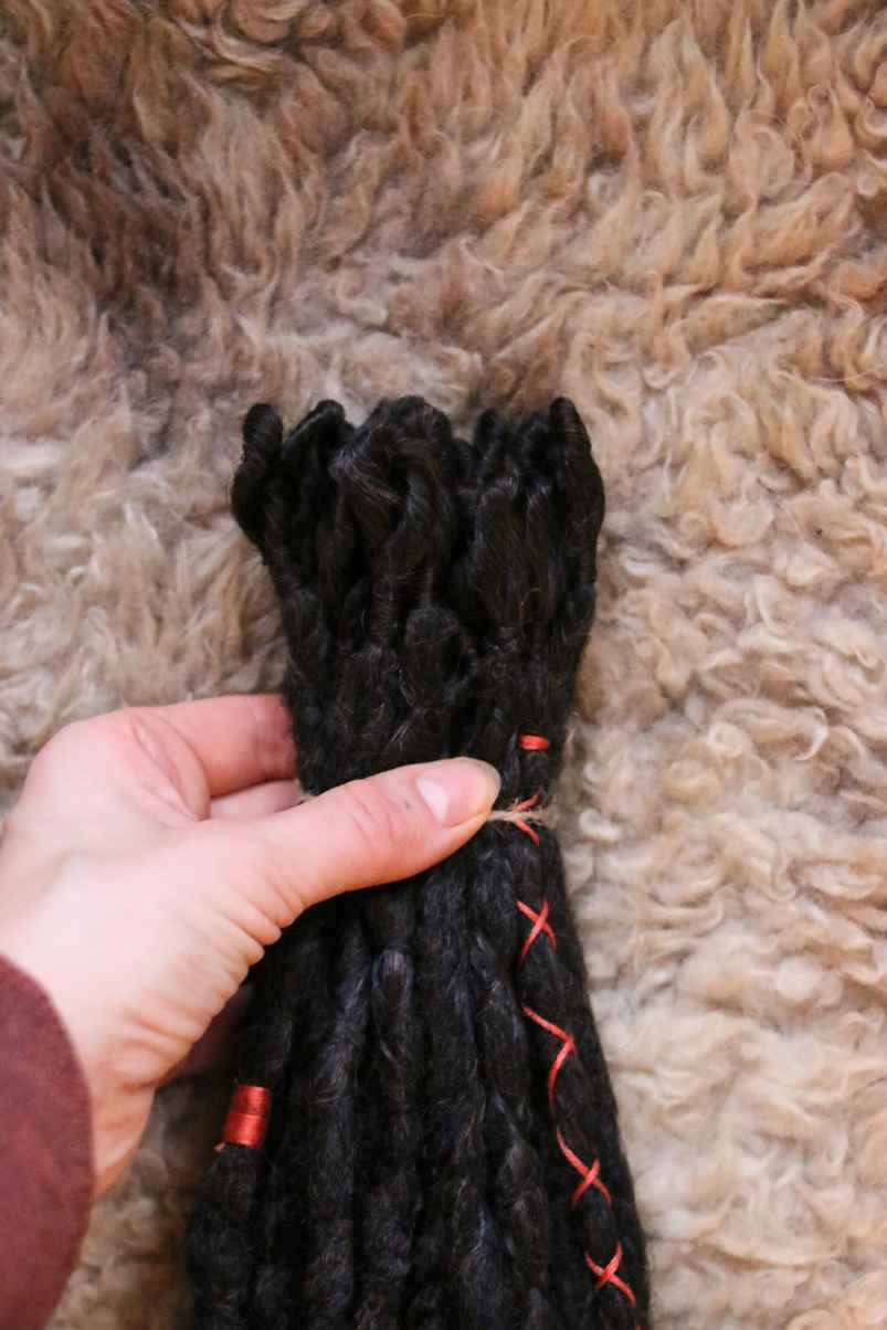 Ihana pikkusetti yksipäisiä (SE) kuitutakkuja. Väri liukuu tummanruskeasta keskiruskeaan. Koristeena oranssia narua ja puuhelmiä. Setissä on 24 kpl 45-50 cm mittaisia takkuja. Setti riittää puoleen päähän. HUOM! Voit valita tuotteelle joko noudon kivijalkaliikkeestä (Kirkkokatu 2, Vihreä Huone, Oulu) tai postituksen kotimaahan. Jos valitset postituksen, lisää ostoskoriin Toimitukset kategoriasta "pieni toimitus kotimaa S". Ostat siis 2 tuotetta: sekä takut että postituksen sille. Jos sinulle tulee kysyttävää, voit laittaa viestiä instagramissa @bypetrakatariina tai sähköpostia: bypetrakatariina@gmail.com