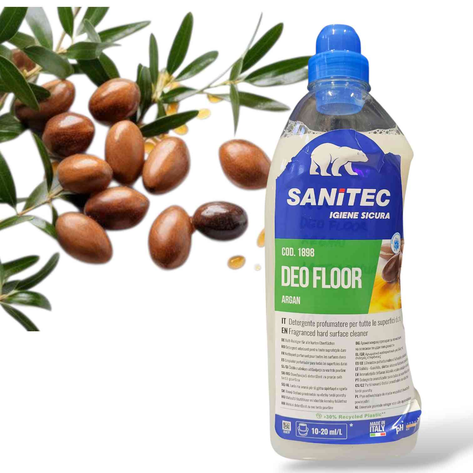 Concentrated extra-deodorising hard surface cleaner. Cleans environments leaving a fragranced-lasting fresh scent behind. Its molecular odour eliminator formula guarantees safe cleaning of environments.