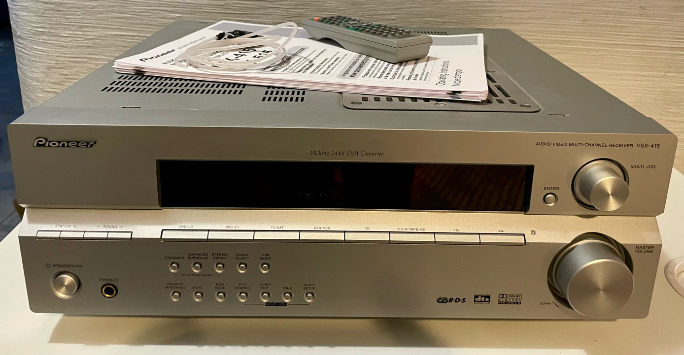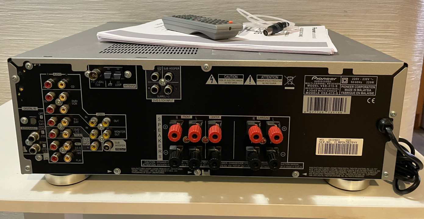Myydään toimiva ja laadukas Pioneer VSX-415 AV-vahvistin. Sopii hyvin kotiteatterin sydämeksi tai stereokäyttöön erilaisten lähdelaitteiden kanssa. Tunnettu Pioneer-äänenlaatu ja selkeät säädöt.
