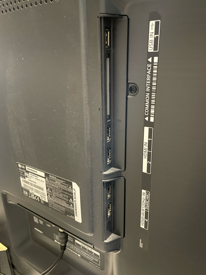 Liitännät • HDMI 2.1 × 4 (joista yksi HDMI ARC/eARC – yhteensopiva soundbarin/AV-vahvistimen kanssa) • USB × 2 (USB IN 2 ja 3) • LAN (Ethernet) × 1 • Optical Digital Audio Out (S/PDIF) × 1 • Antenni / Kaapeli / Satelliitti (RF In / Satellite In) • CI+ korttipaikka (operaattorikanavia varten) • Wi-Fi ja Bluetooth (langaton verkko ja oheislaitteet)