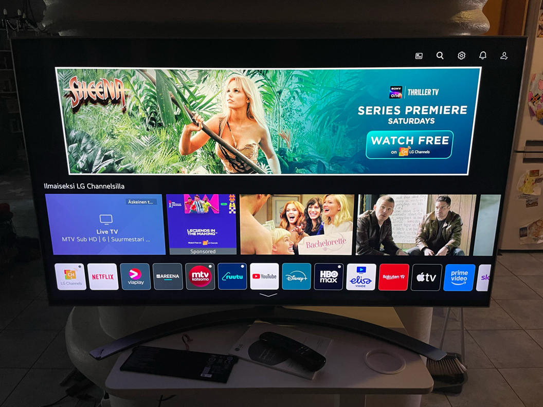 Televisio tukee laajasti suoratoistopalveluita ja sovelluksia LG Content Storesta. Suosituimmat valmiina saatavilla: • Netflix • YouTube • Disney+ • HBO Max • Amazon Prime Video • Apple TV / Apple TV+ • Rakuten TV • Viaplay • Yle Areena • Ruutu • MTV Katsomo • Elisa Viihde • LG Channels