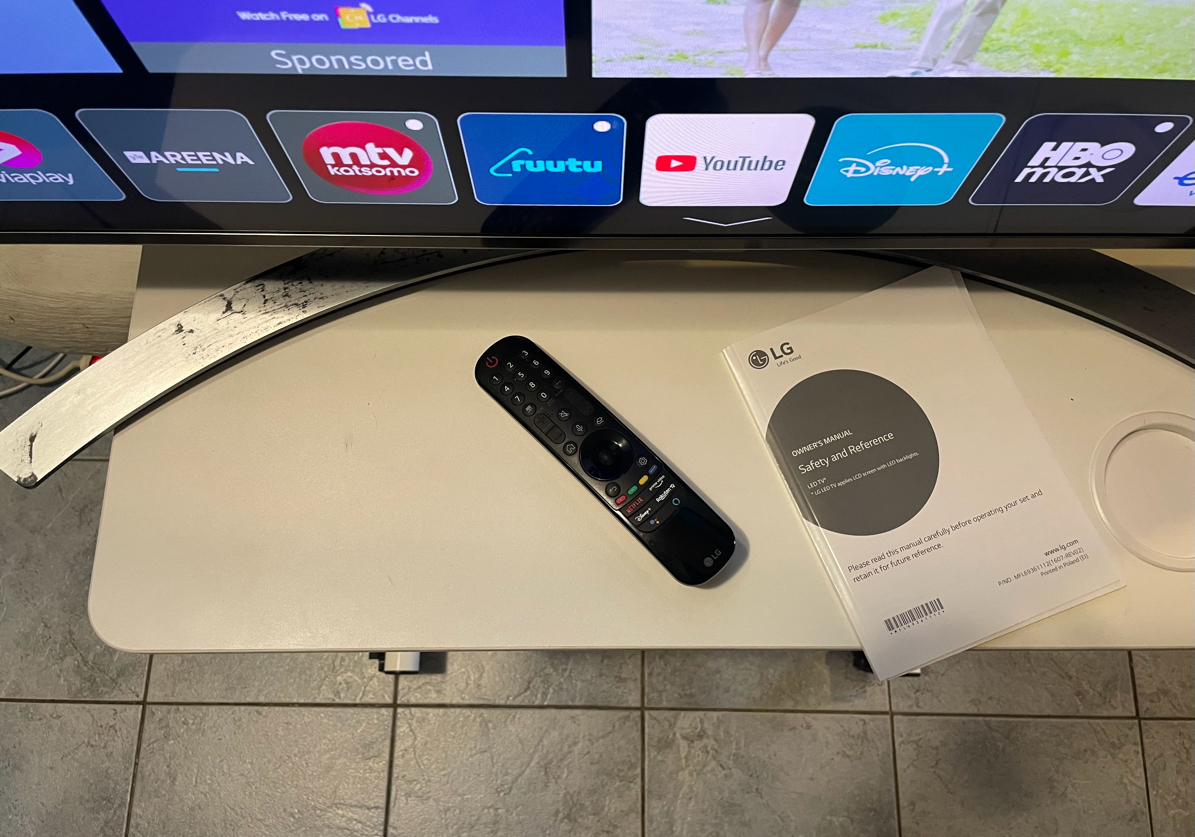 Kunto ja toimitus • Kunto: hyvä, normaalia käytön jälkeä. Kuva ja toiminnot täysin kunnossa. • Mukana: televisio, virtajohto, alkuperäinen jalka (pinnoite kulunut), käyttöohje ja kätevä LG Magic Remote -kaukosäädin.