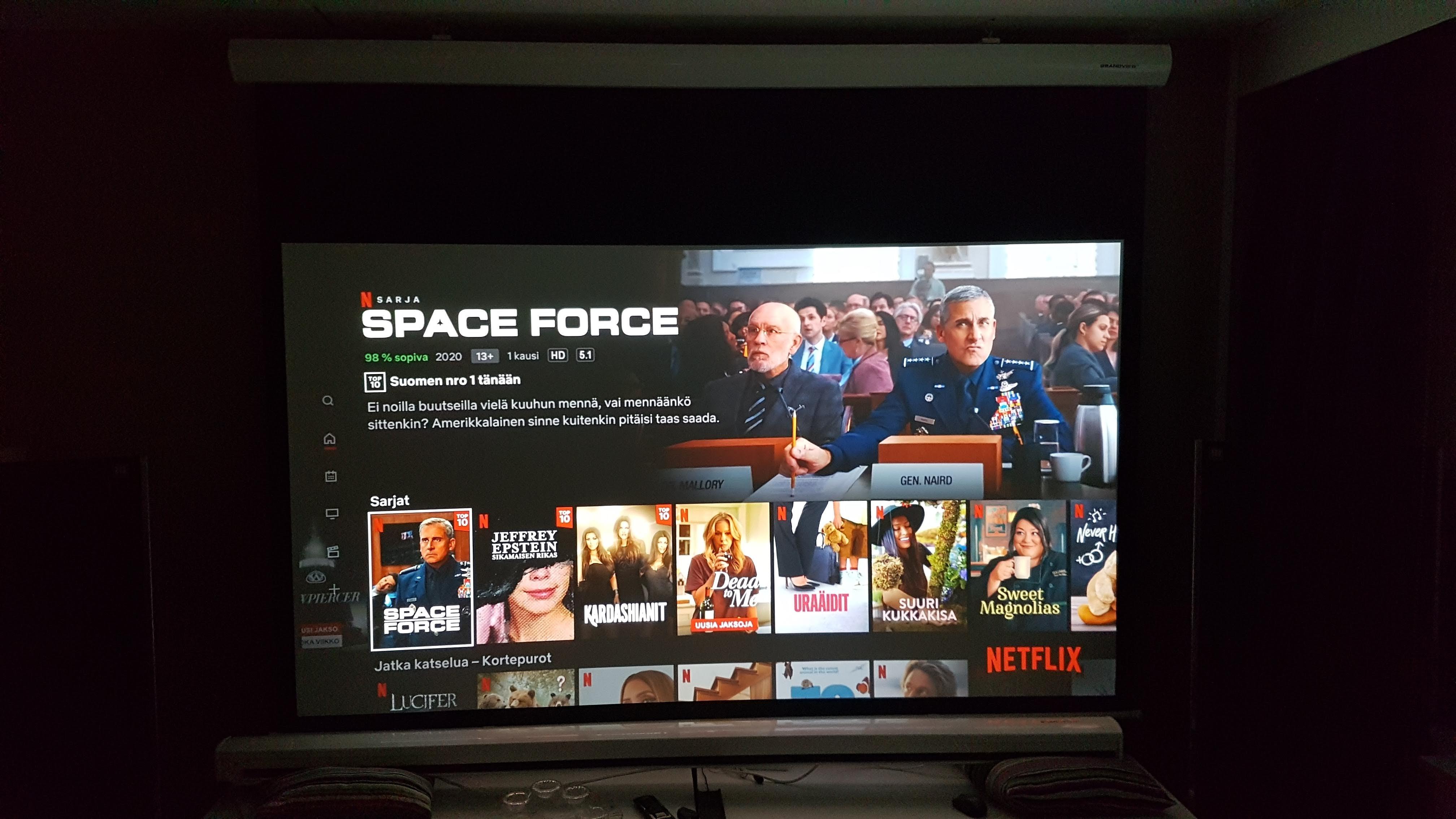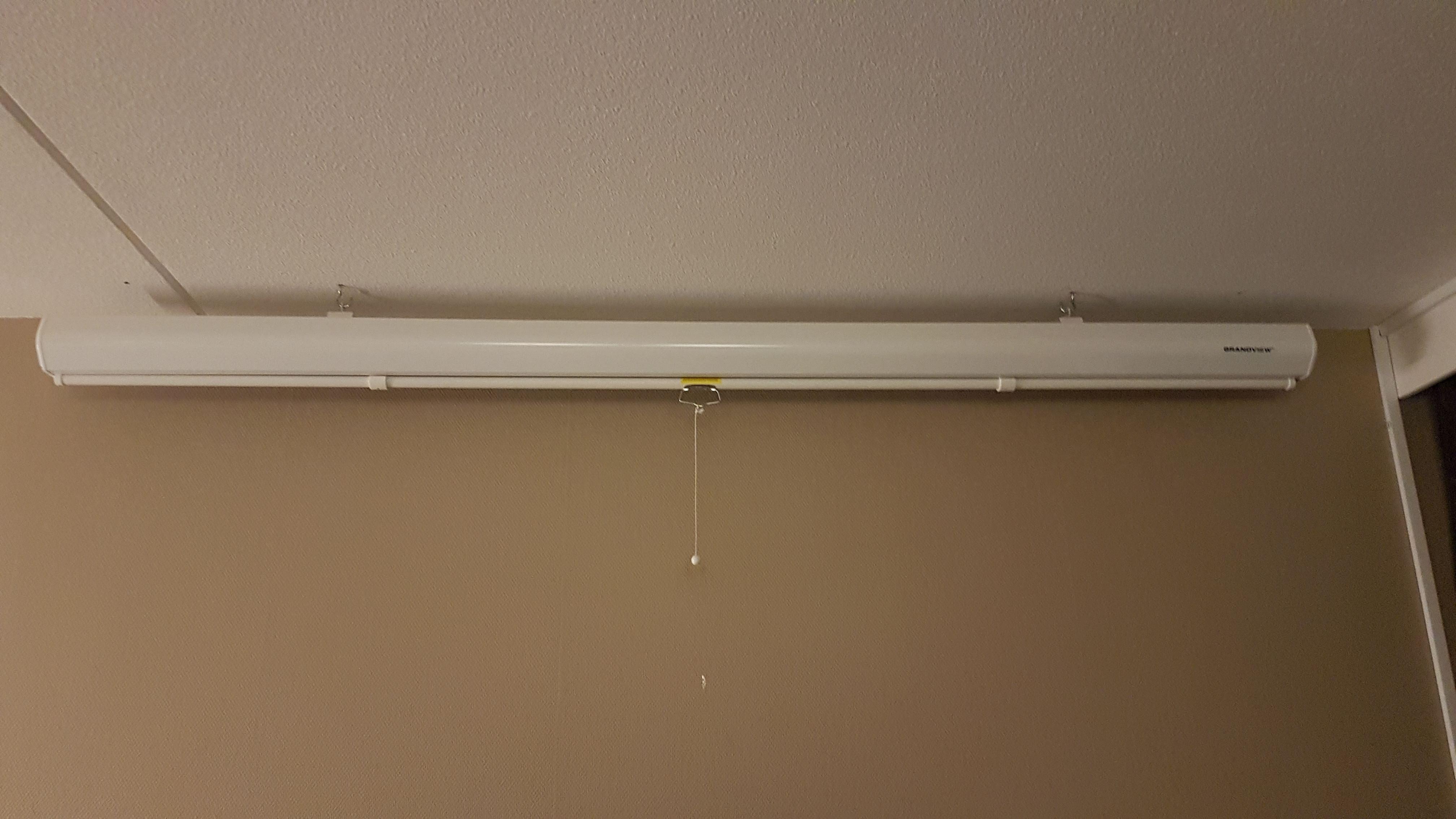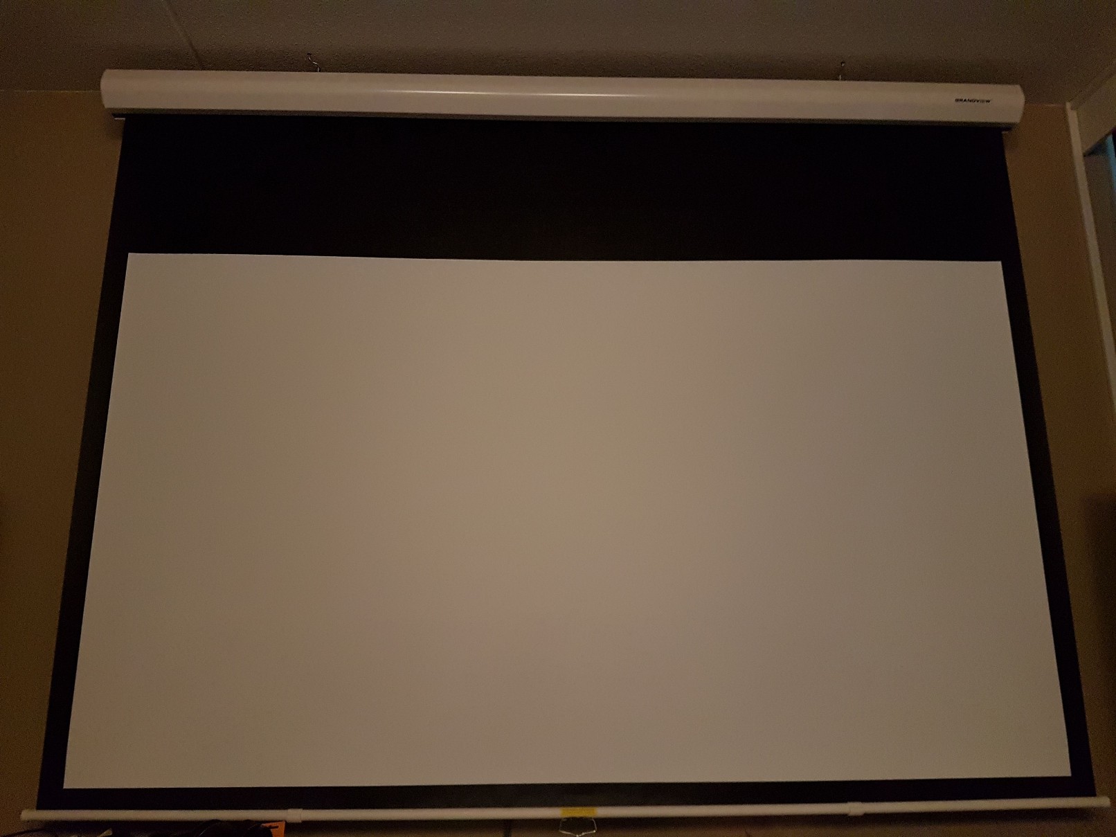 Vuonna 2014 ostettu manuaalinen valkokangas, joka on ollut kevyellä käytöllä. Itse kangas kiitettävässä kunnossa, vasemmassa yläkulmassa tosi lievää aaltoilua, mikä ei ole häirinnyt. Kuvanlaatu jotain mitä voi vain alan merkkikankaalta odottaa. Kuvat puhukoot puolestaan. Yeisesti hyväkuntoinen ja siisti.