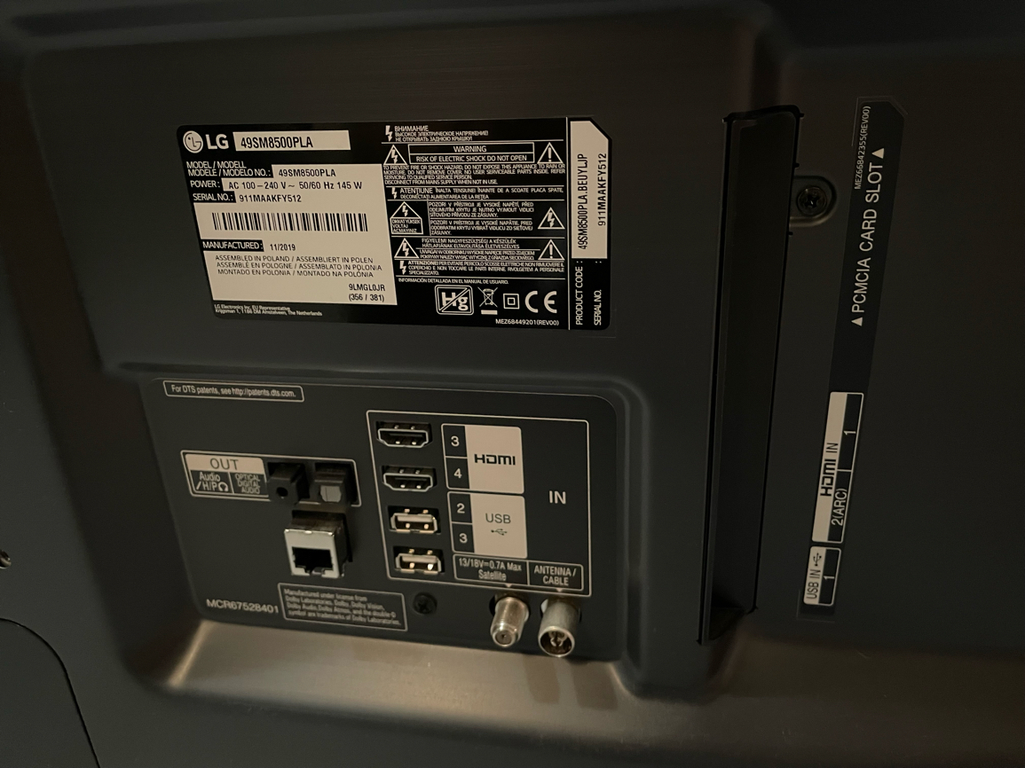 Lisätiedot: • Malli: 49SM8500PLA • Valmistettu 11/2019, Puola • Virrankulutus: 145 W • Mukana alkuperäinen LG Magic Remote -kaukosäädin, virtajohto ja suomenkieliset käyttöohjeet