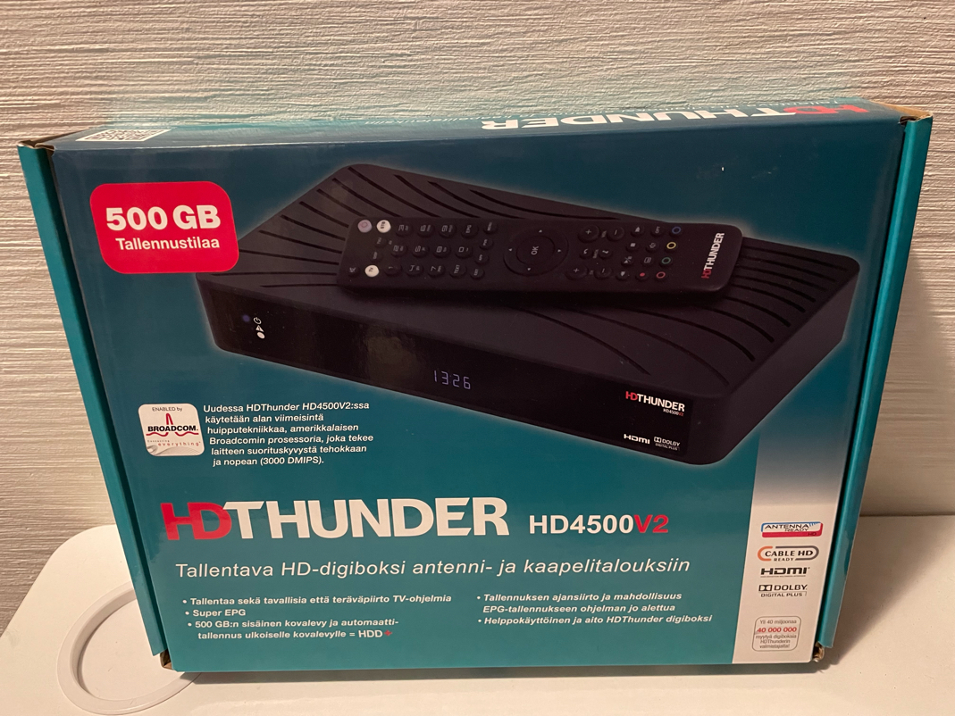 Myydään toimiva ja helppokäyttöinen HDThunder HD4500V2 -tallentava digiboksi. Sopii sekä antenni- että kaapelitalouksiin, HD kanaville.