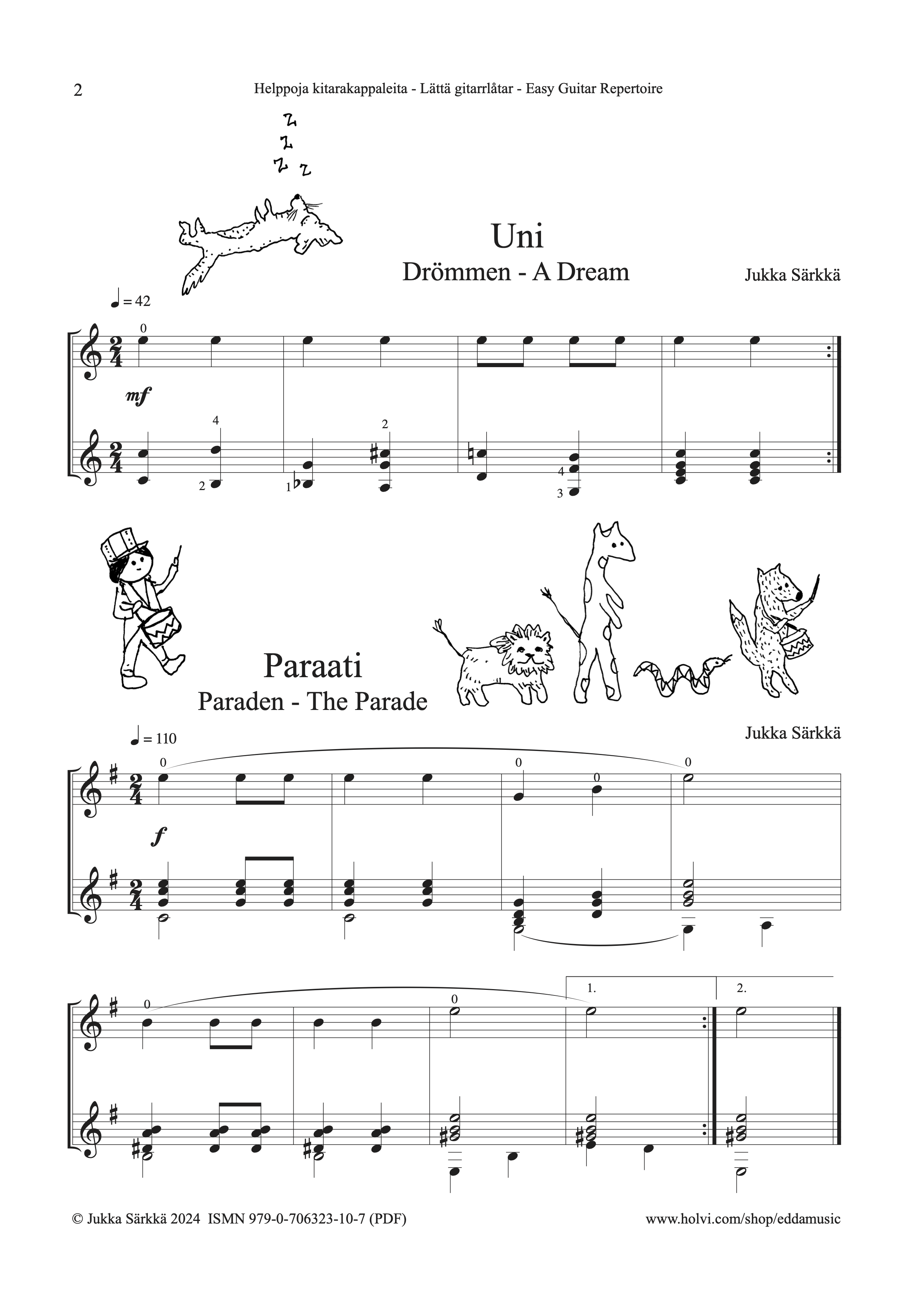 Tähän kokoelmaan on valittu suosituimmat eri vuosikymmenillä syntyneistä helpoista kitarakappaleista. Viehättävän kuvituksen on tehnyt Terhi Varonen. Kappaleet on testattu ja hyviksi havaittu sekä soittotunneilla että konserteissa. Voit ladata kirjan heti oston jälkeen. Saat myös sähköpostin, jossa on latausohjeet. Painetun kirjan saat Ostinato -nuottikaupasta https://ostinato.fi ja Riento Shopista https://rientoshop.com.