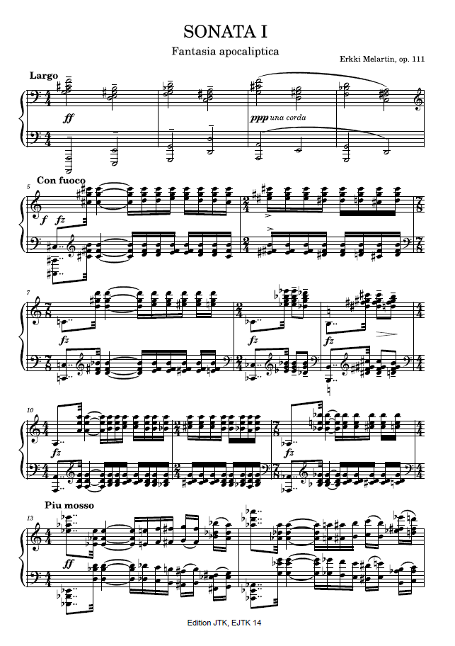Suomalaisen säveltäjän (1875-1937) väkevän ekspressiivinen teos, 26 sivua.