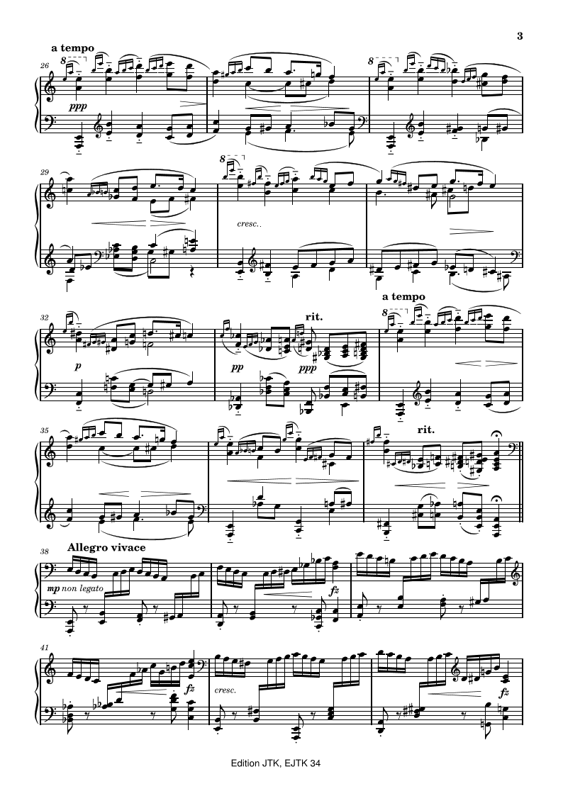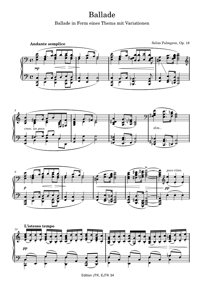 Suomalaisen säveltäjän (1878-1951) muunnelmamuotoinen pianoteos. 8 sivua musiikkia. A piano piece in variation form by a Finnish composer (1878–1951). 8 pages of music.