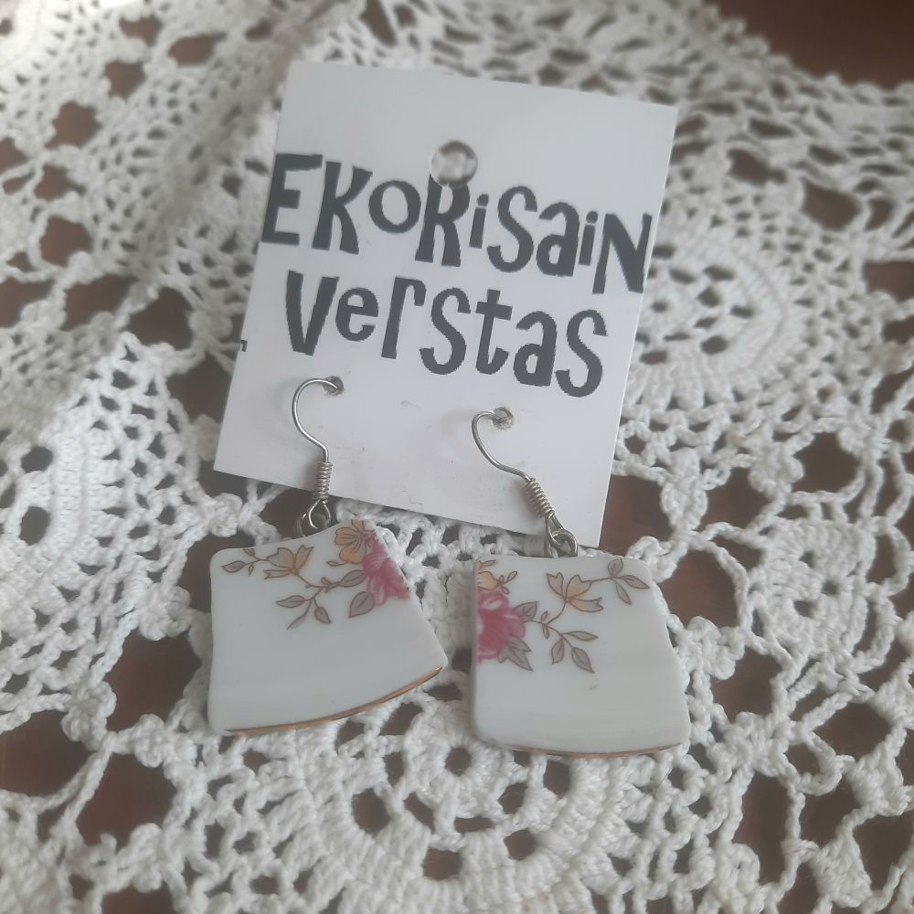 Säröisestä Ruusulautasesta valmistetut korvakorut, koko 2x2,5cm, koukut kirurginterästä.