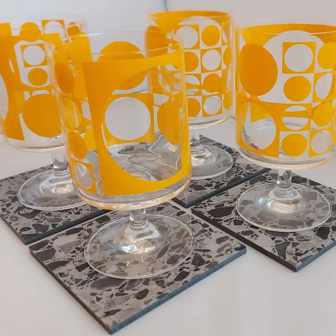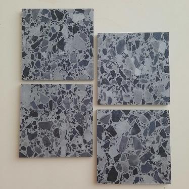 Musta kivi kuosinen lasinalunen, valmistettu vinyylilaminaatti ylijäämästä, kestävä ja helposti pestävä, koko 10x10cm.