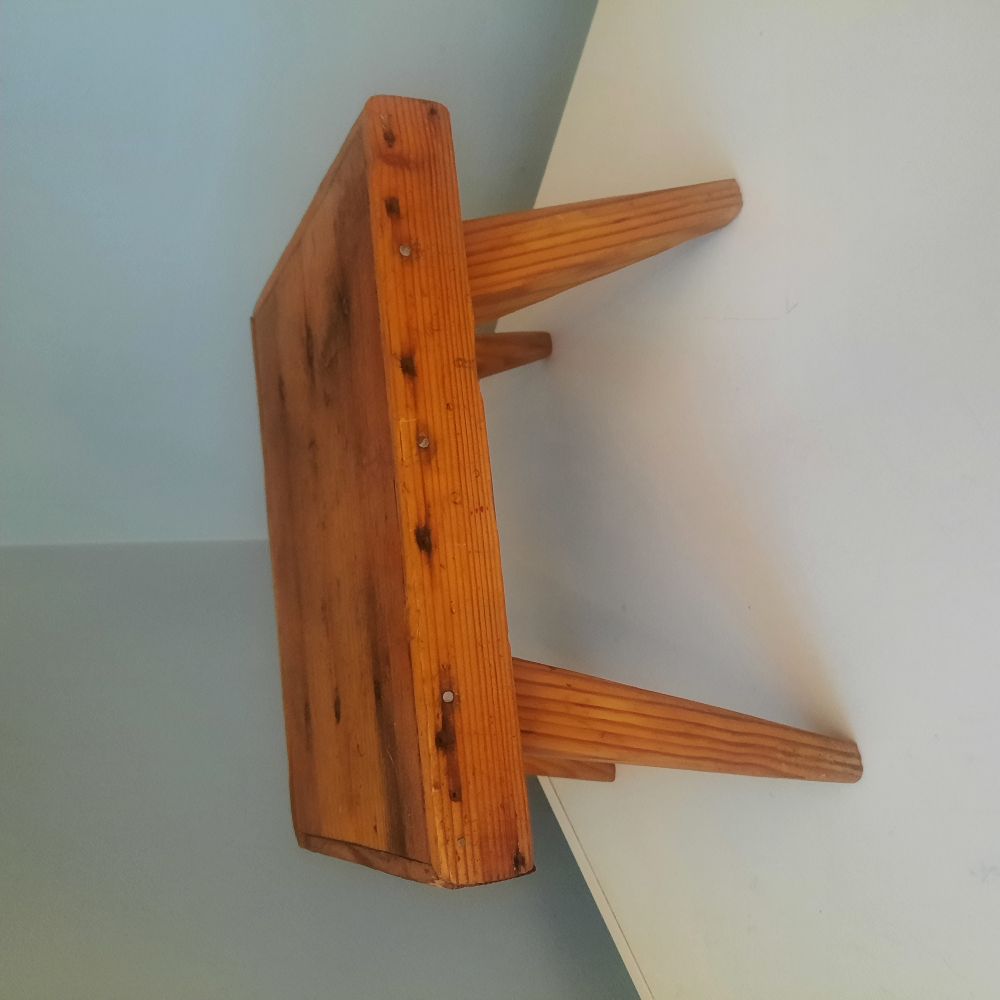 Pieni käsityönä tehty vanha jakkara, koko 32x23cm ja korkeus 20cm. Ajan patinoima paljon pieniä nauloja käytetty korjaukseen, verstaalla hiottu pinnat ja laitettu luonnonvaha pintaan, jakkara tukeva.