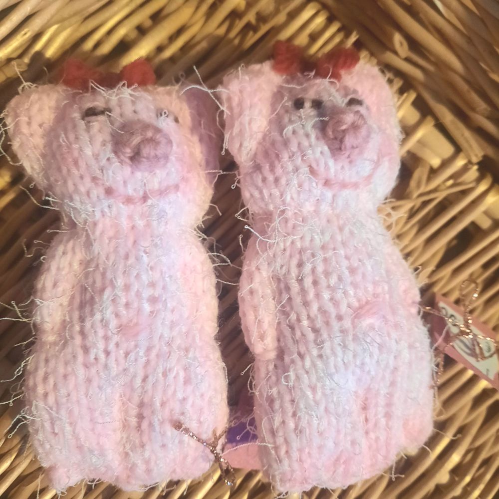 Sikaihana tyttö on neulottu jämälangasta, korkeus n.10cm