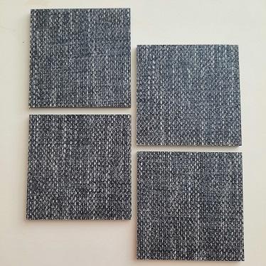 Musta juutti kuosinen lasinalunen, valmistettu vinyylilaminaatti ylijäämästä, kestävä ja helposti pestävä, koko 10x10cm.