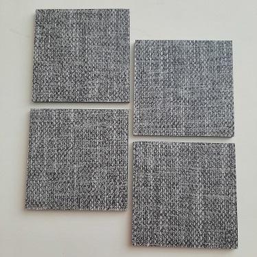 Ruskea juutti kuosinen lasinalunen, valmistettu vinyylilaminaatti ylijäämästä, kestävä ja helposti pestävä, koko 10x10cm.