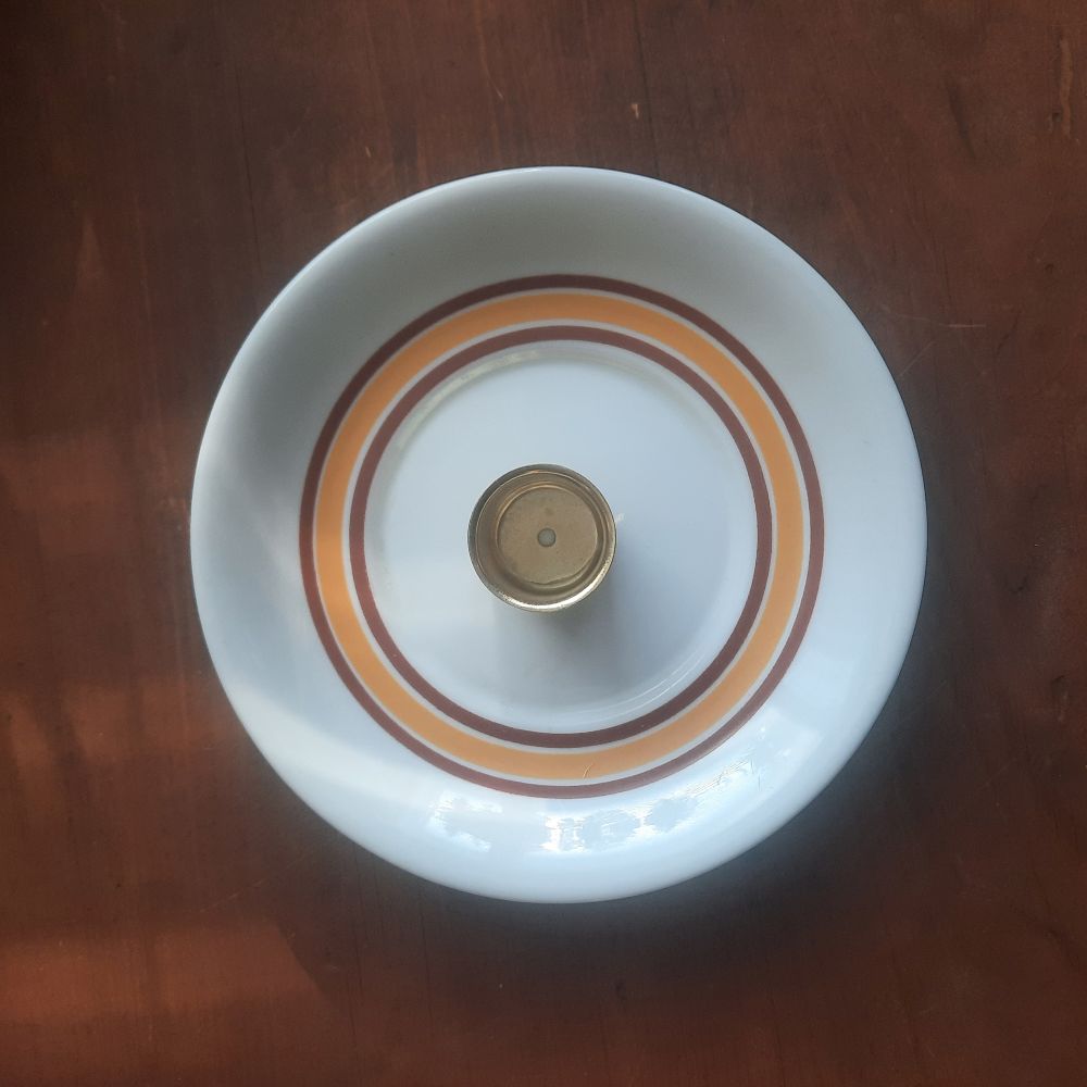 Vanhan parittoman tassin uusielämä kynttilän jalkana, poltathan kynttilää aina valvotusti, holkki kruunu- tai antiikkikynttilälle. Lähes uniikki tuote , koska valmistettu kierrätys astiasta. Kaunis tunnelmanluoja kattauksessa, niin juhlapöydässä kuin mökilläkin, Valmistettu Lahdessa.