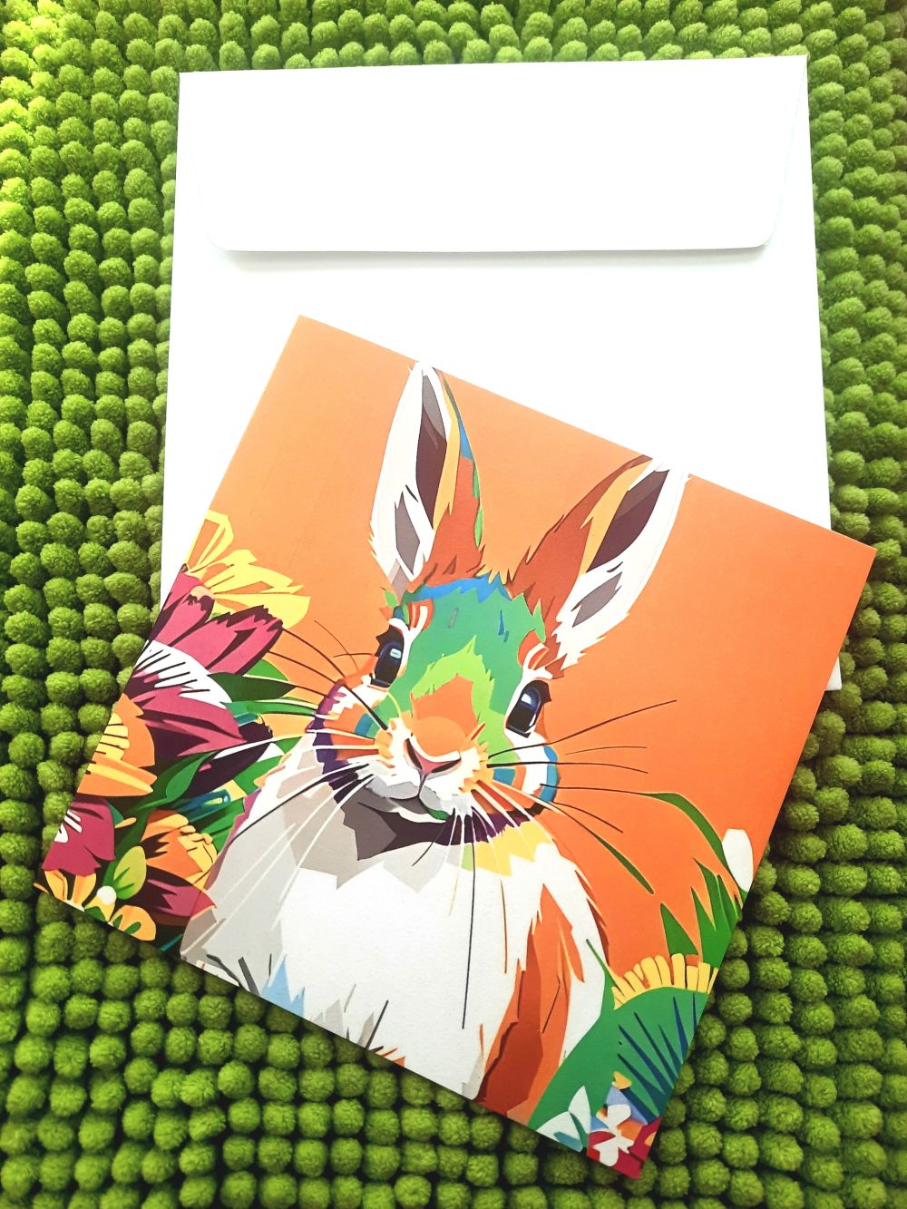 Ihana kaksi osainen pupukortti kirjekuorella koko 14,5x14,5cm. Suunnittelija Pinja Metso.