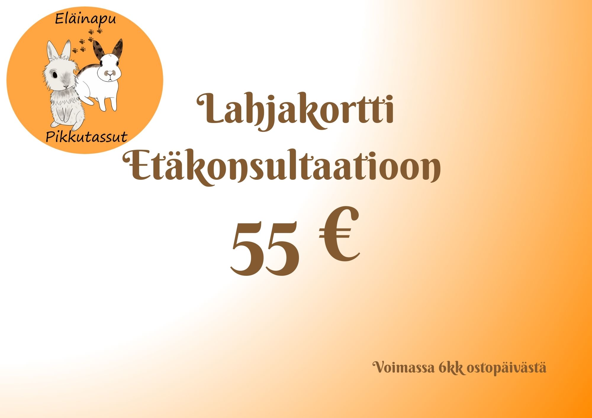 Tällä lahjakortilla saa yhden tunnin mittaisen etäkonsultaatioajan (arvo 55€).