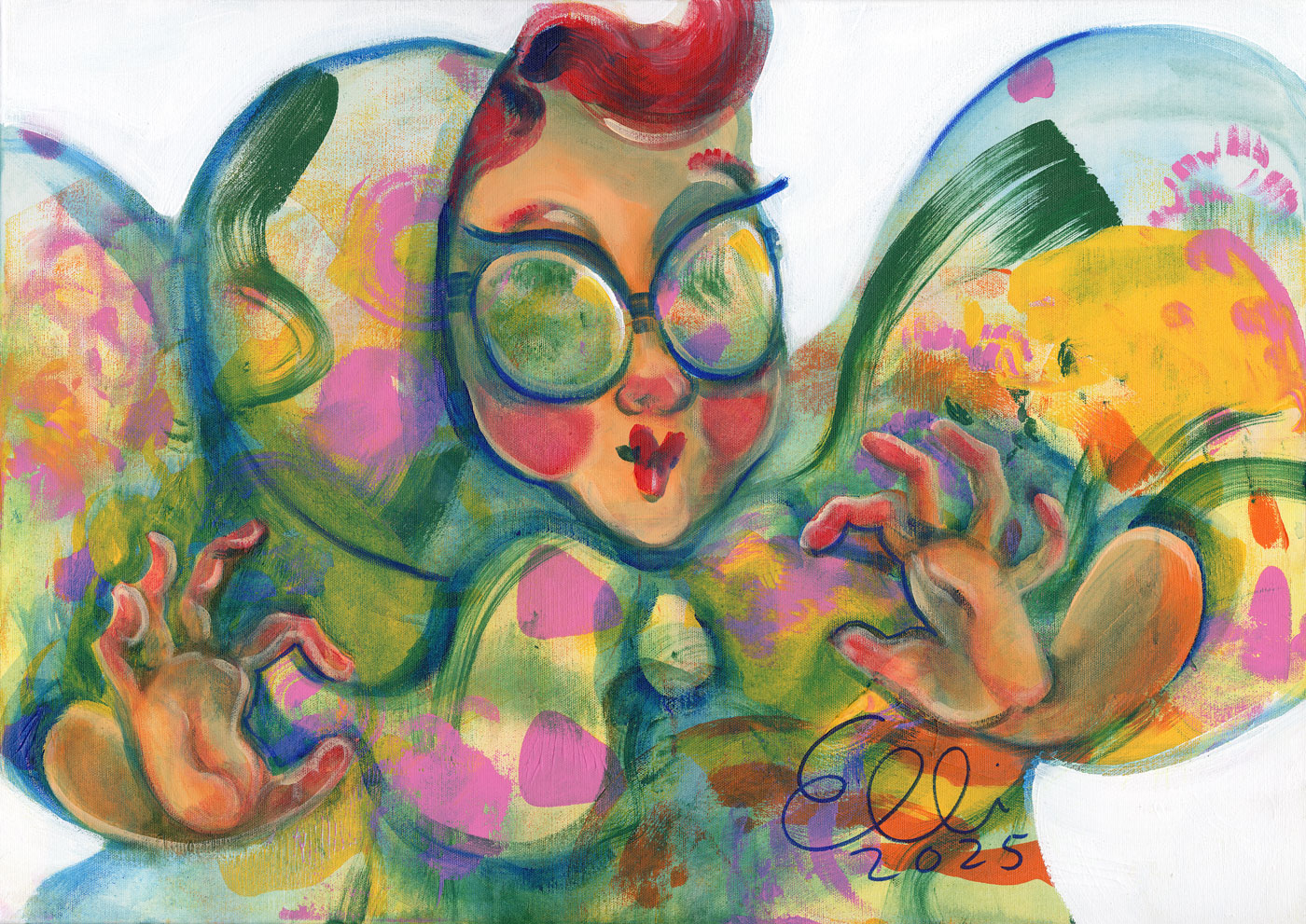 Elli Maanpää: Kesä sopii minulle, 2025, 70 × 50 cm, akryylimaalaus kankaalle.