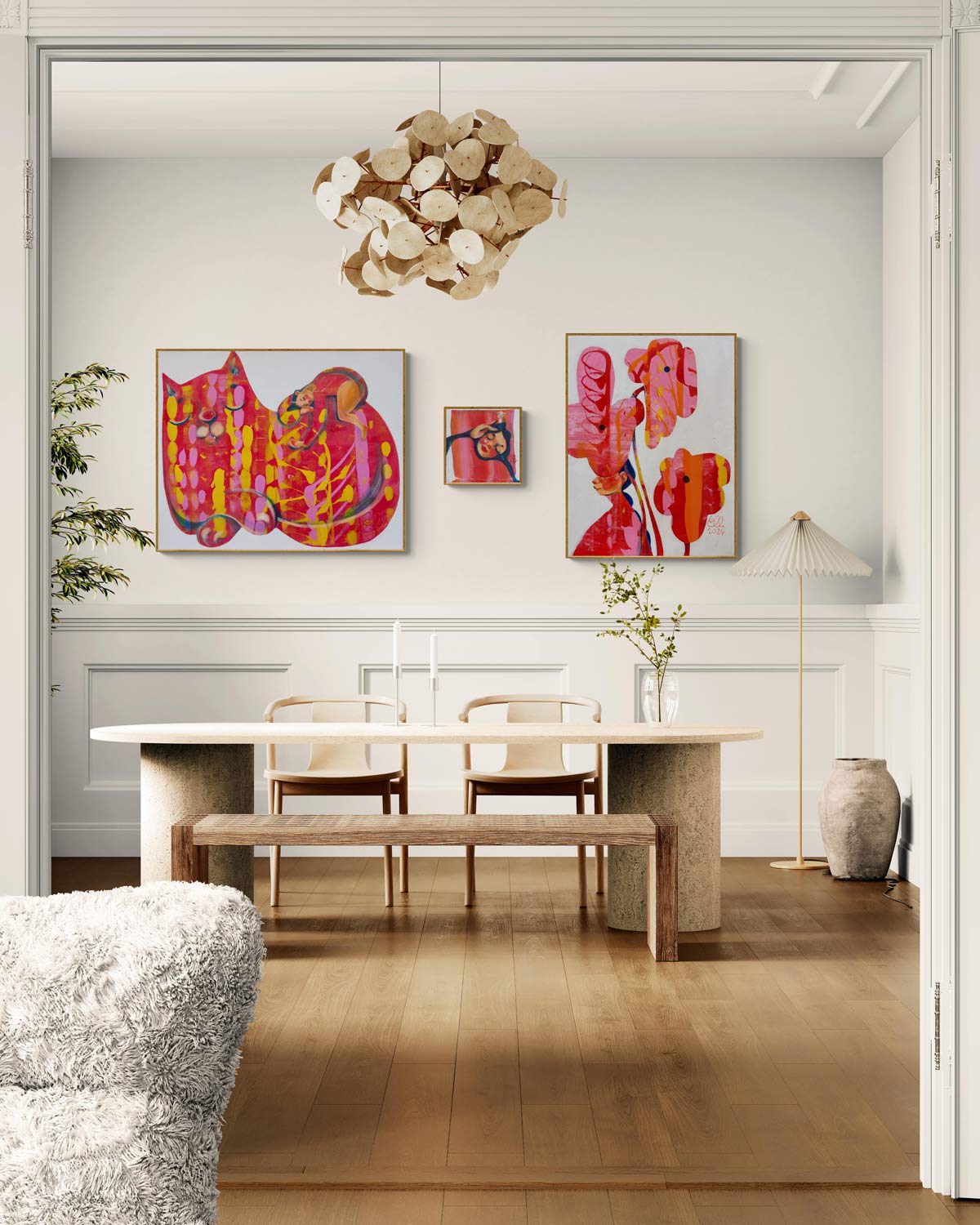 For me, creating art serves as a protective layer. This piece was inspired by floral sketches made during a phone call—an activity that often makes me nervous, though doodling helps keep me grounded.
