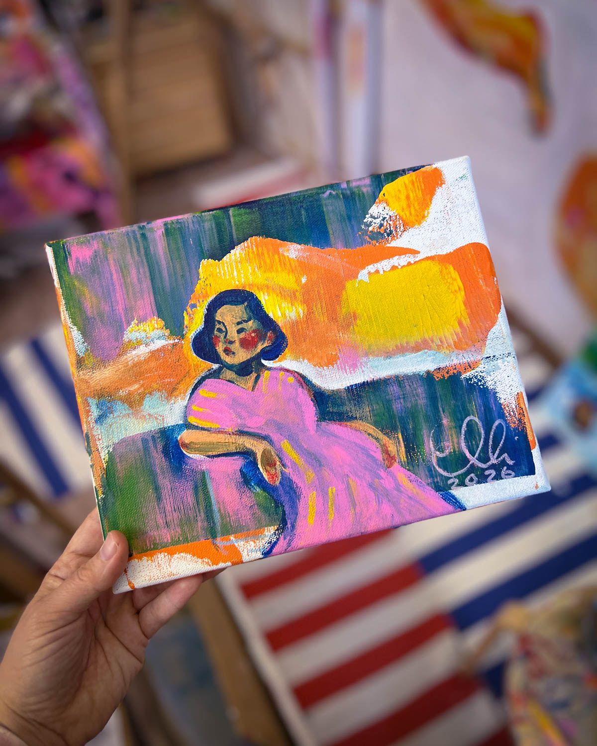 Elli Maanpää: Humiseva harju, 2026, 25 × 20 cm, akryylimaalaus kankaalle.