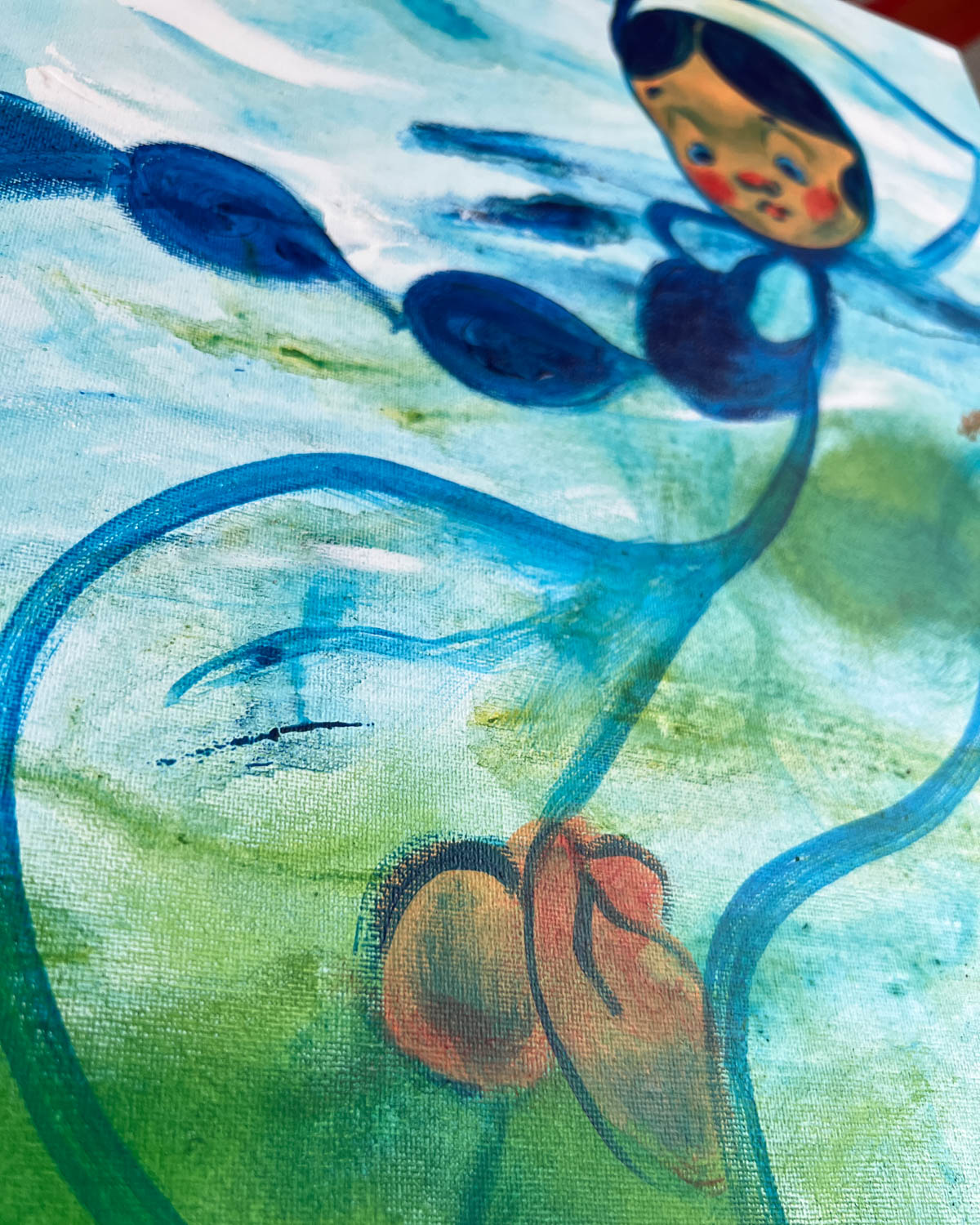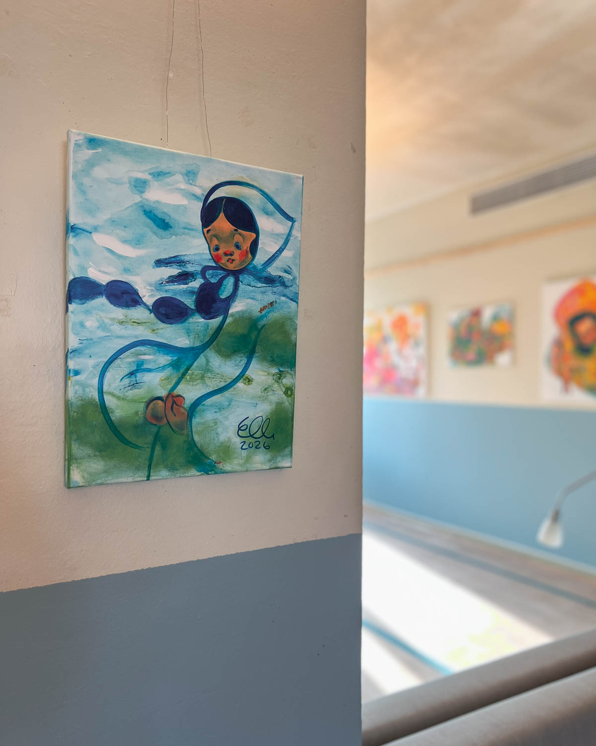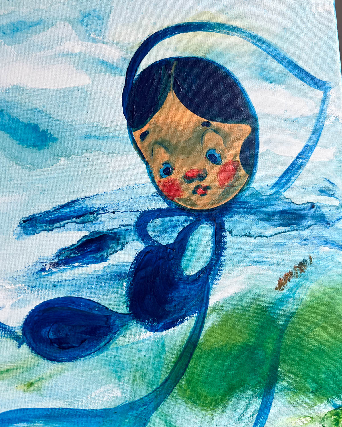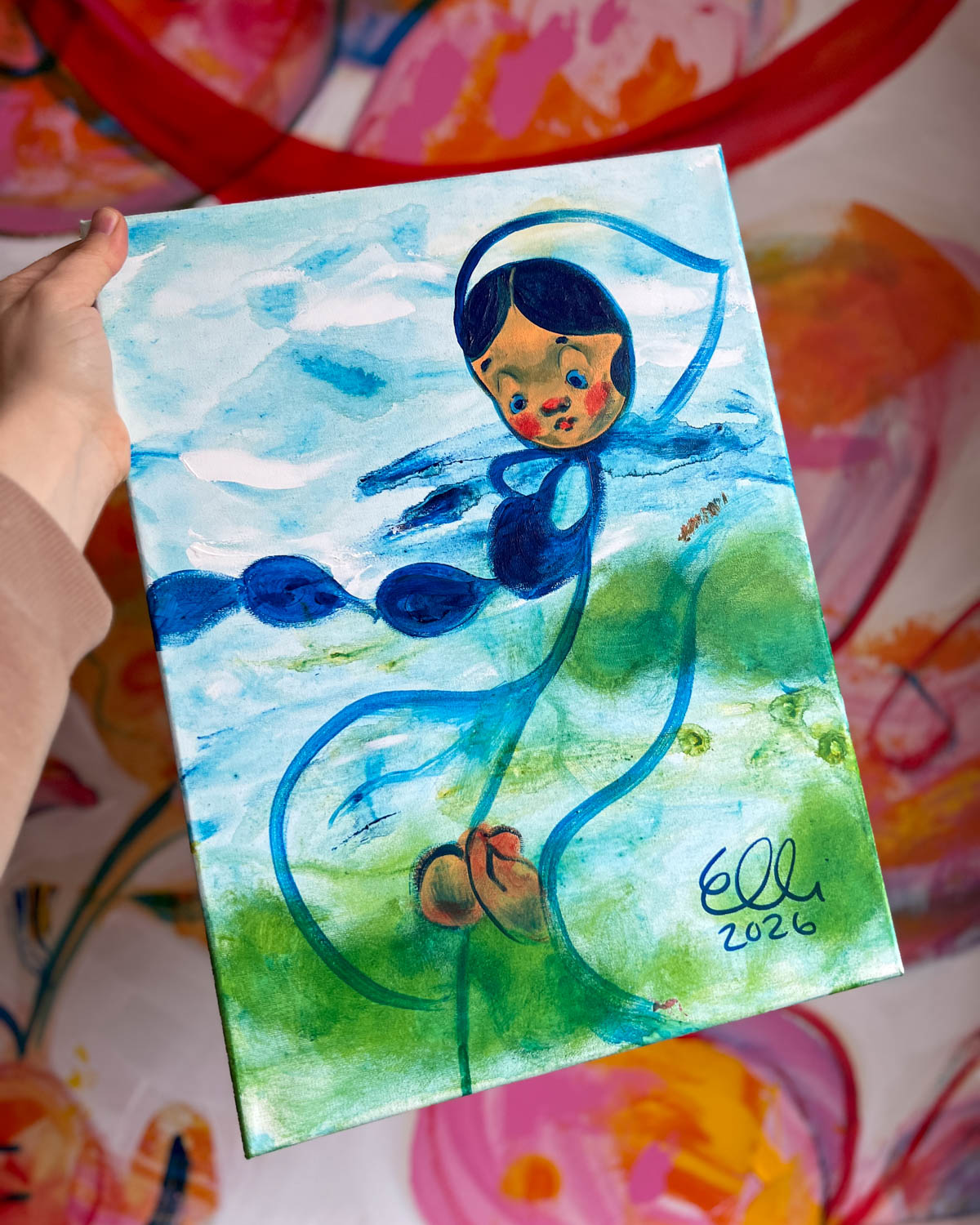 Elli Maanpää: Omissa käsissä, 2026, 30 × 40 cm, akryylimaalaus kankaalle.