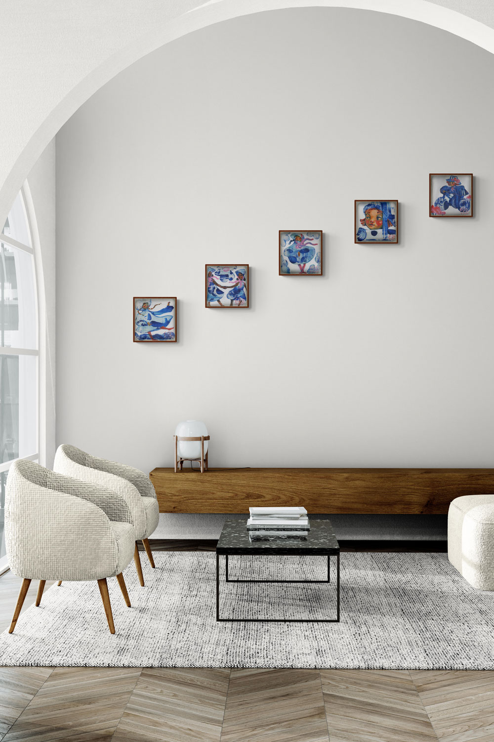 While each piece is a unique original, they can also be displayed together as a cohesive collection.