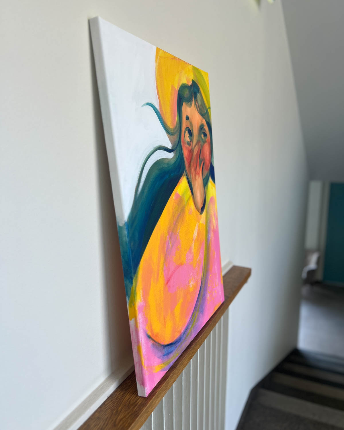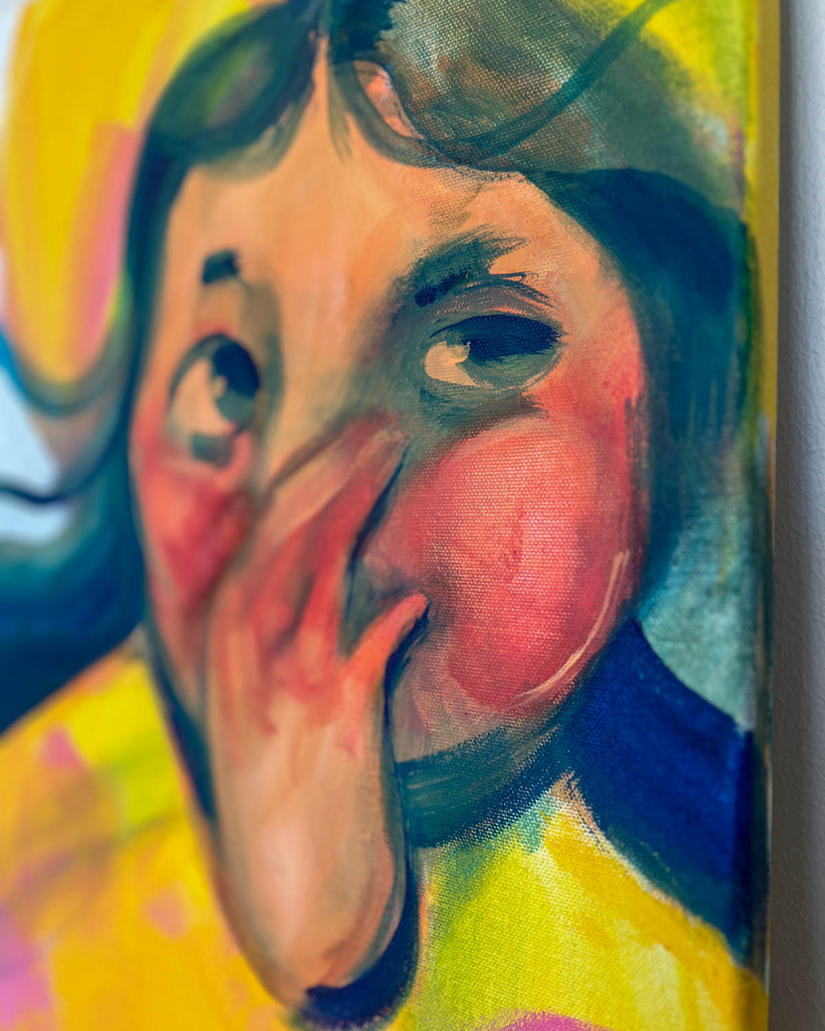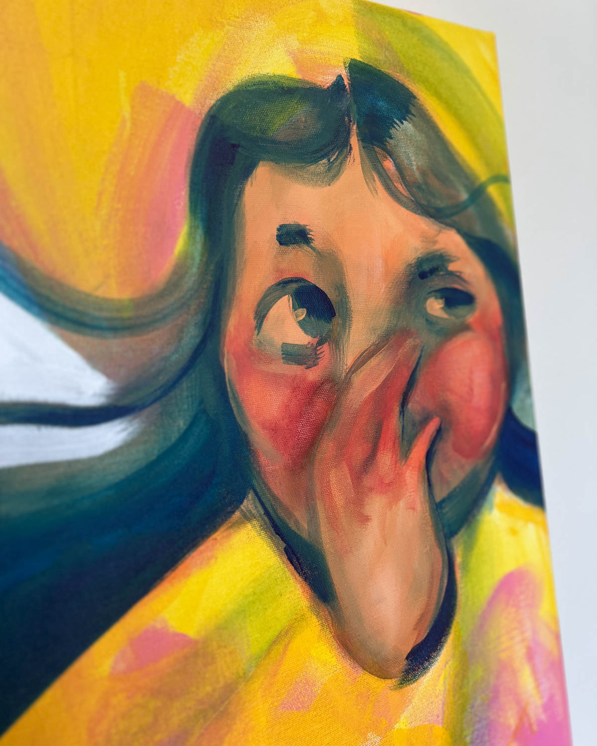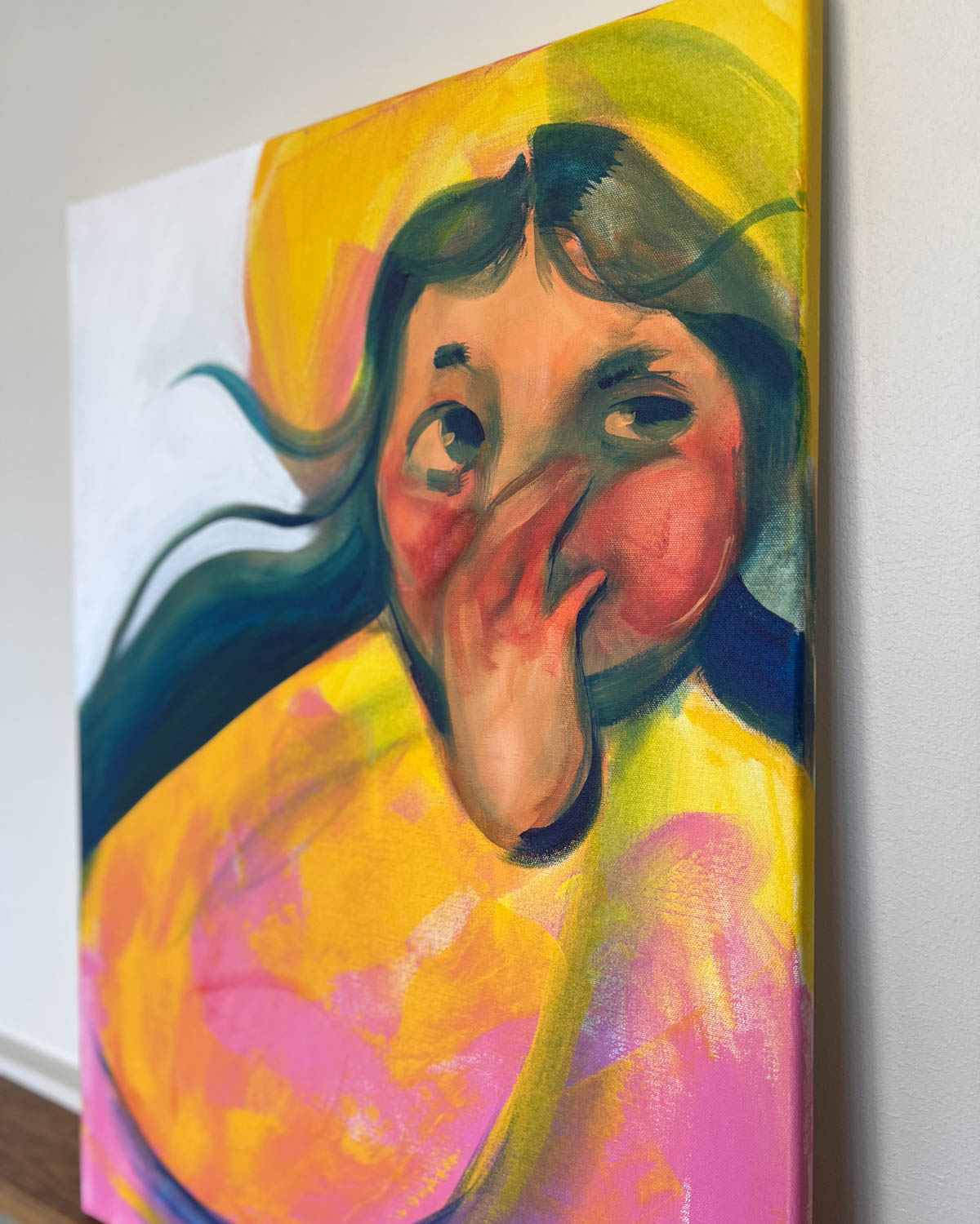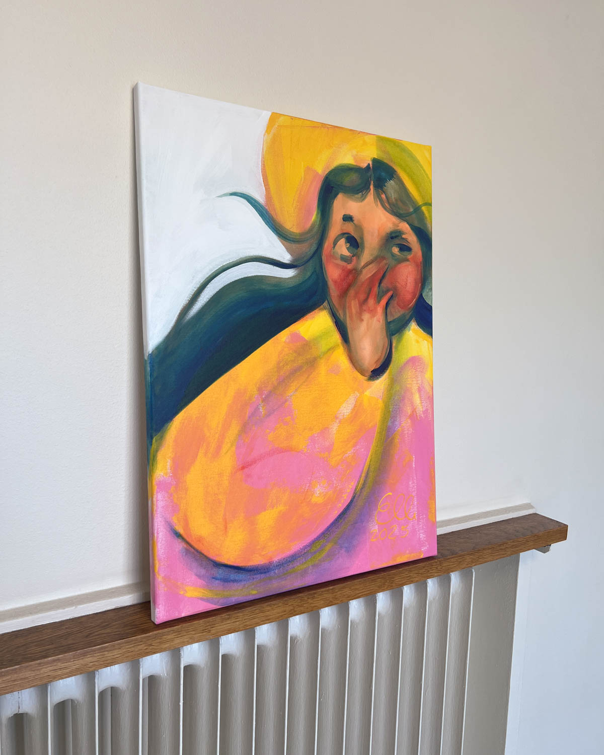 Elli Maanpää: Hihitys, 2025, 50 × 70 cm, akryylimaalaus kankaalle.