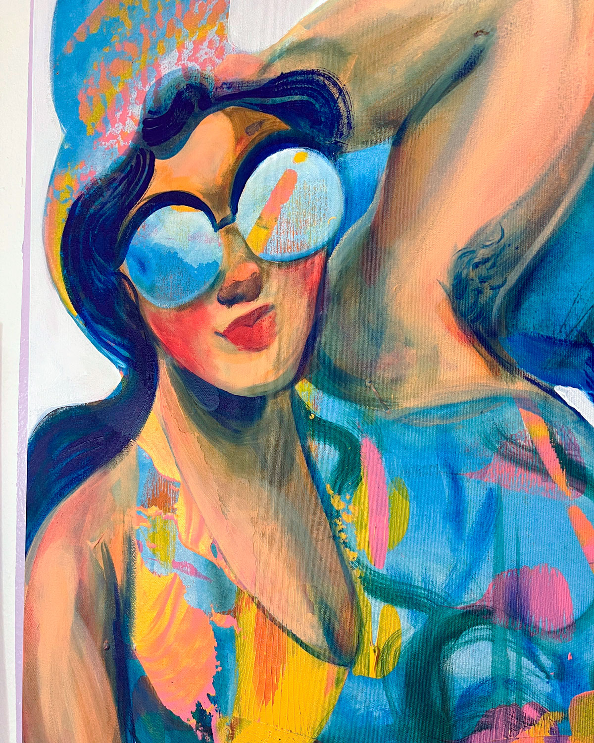 The title originally referred to the abstract natural landscape in the background, then to female beauty, and ultimately, “Nature’s Beauty” playfully alludes to armpit hair.