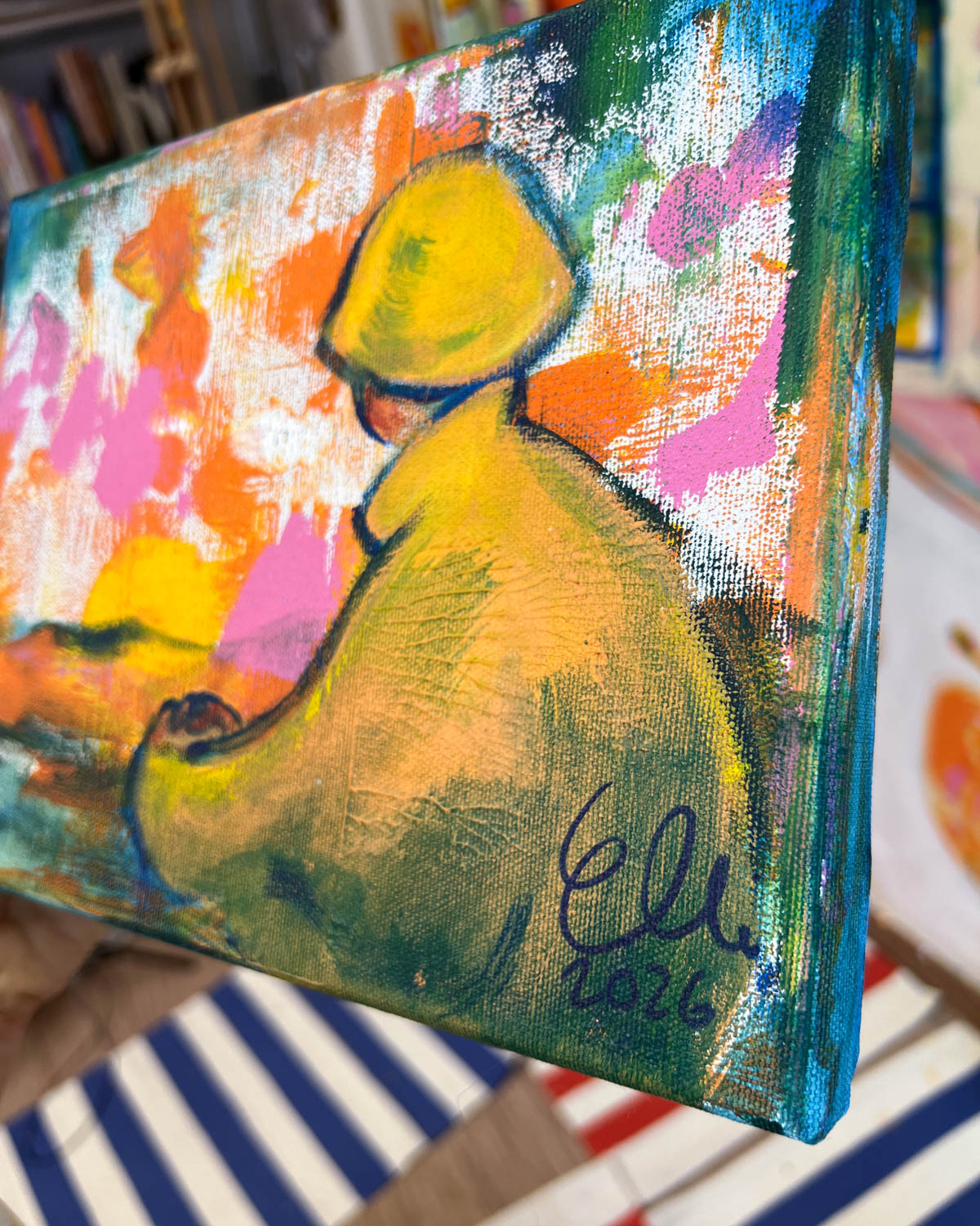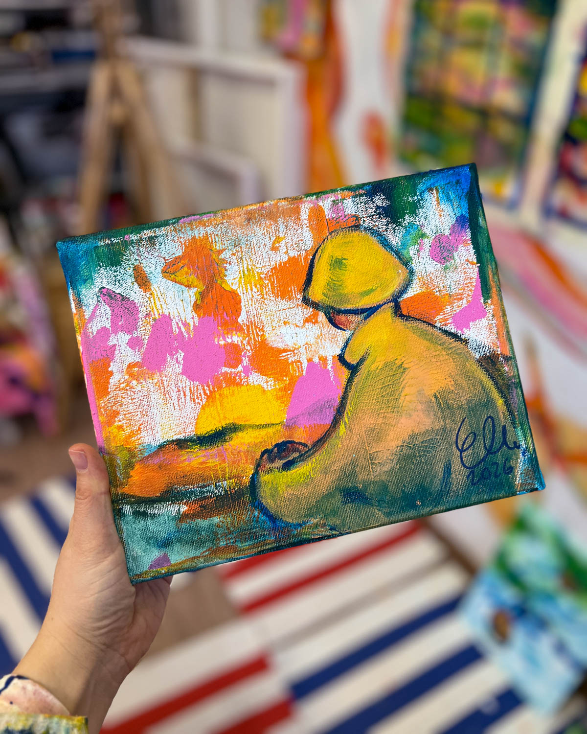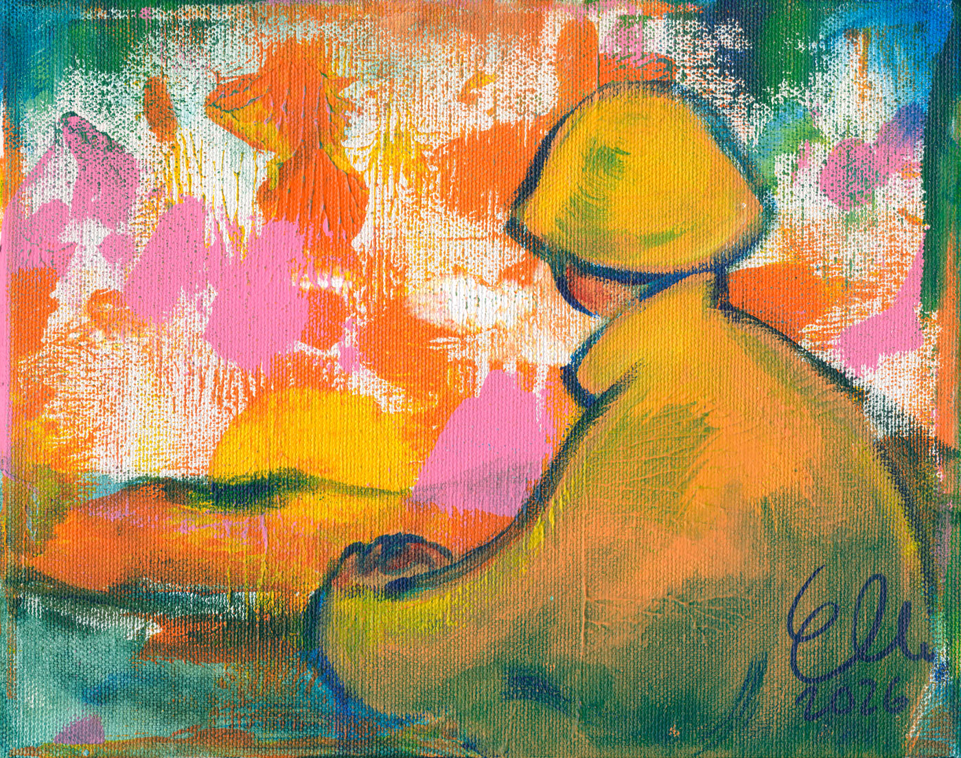 Elli Maanpää: Kaukana kotoa, 2026, 25 × 20 cm, akryylimaalaus kankaalle.