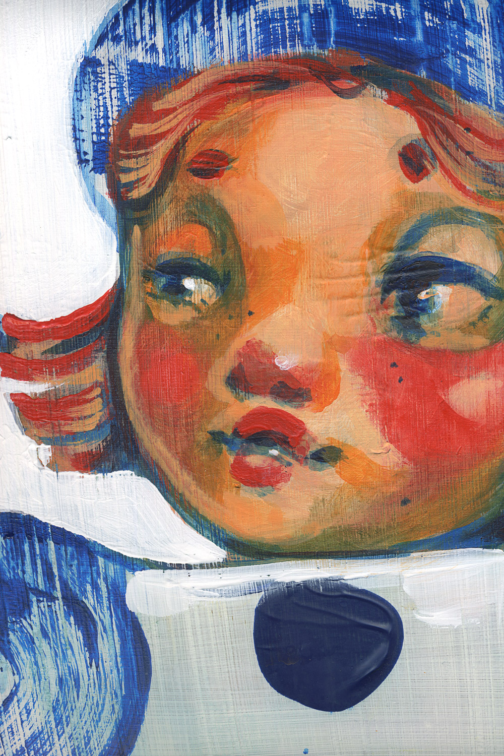 Muñeca is a series of ten paintings exploring the longing for innocence. In Spanish, muñeca means doll, but it is also a slang term for something or someone wonderful. These dolls are as sweet as kittens, as clever as a chessboard, and as resilient as Finnish sisu.