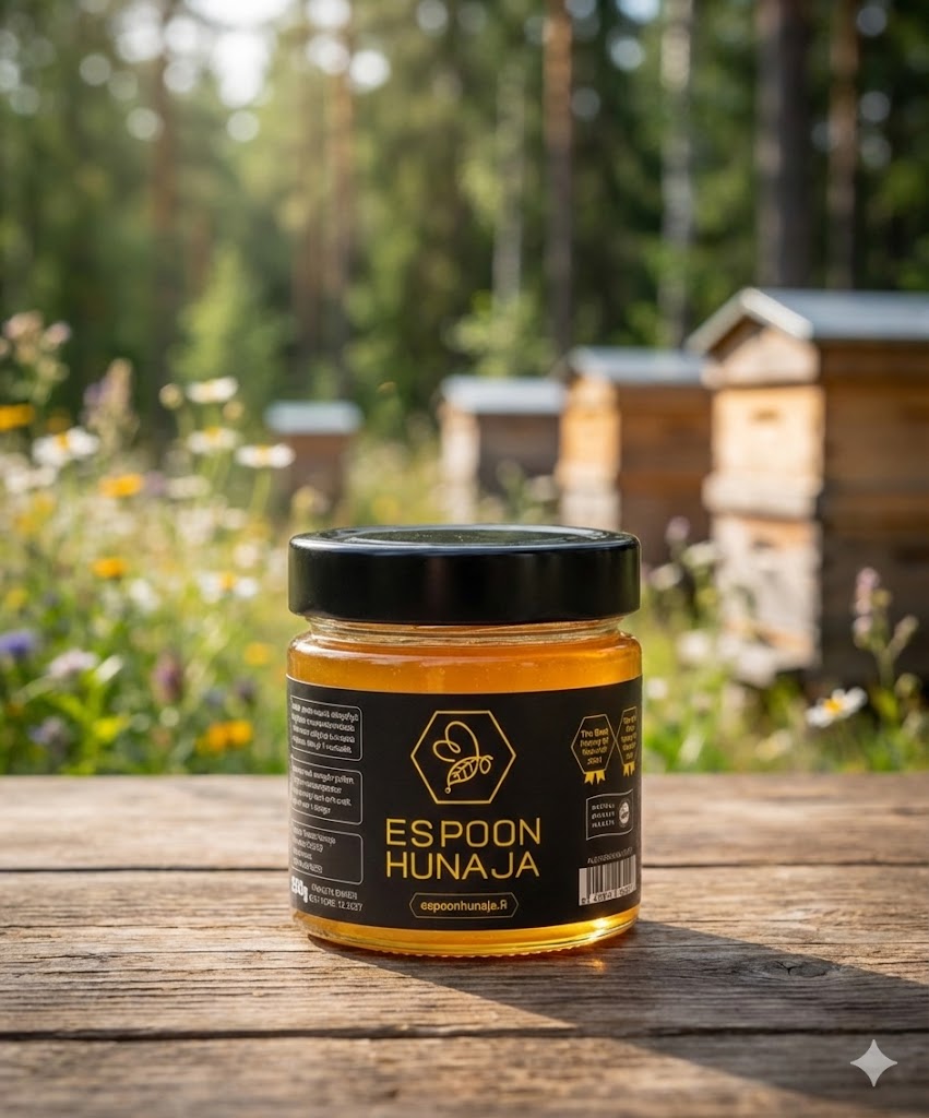Espoon kukkivilta alueilta kerätty Espoon Hunaja on puhdasta, käsittelemätöntä ja lisäaineetonta hunajaa. Hunajalla on kaunis kullanvärinen sävy ja miellyttävä, pehmeä maku, joka sopii hyvin teehen, leivontaan, aamupalalle tai päivittäiseen käyttöön. Espoon Hunaja valittiin vuonna 2024 Stadin Tarhajien hunajakilpailun voittajaksi ja sijoittui Suomen paras hunaja -kilpailussa kolmanneksi, mikä kertoo sen laadusta ja moniulotteisesta mausta. Luonnollista Paikallista Hyvää hunajaa! Hunaja kiteytyy ajan myötä luonnollisesti, mutta se muuttuu jälleen juoksevaksi, kun purkkia lämmitetään hetki lämpimässä (ei kuumassa) vesihauteessa. Sisältää pieniä määriä siitepölyä. Säilytetään huoneenlämmössä. Pitkäaikainen säilytys kuivassa ja viileässä. Vain yli 1-vuotialle. Lähetetään kilon ämperissä tai 2 kpl 500g lasipurkissa
