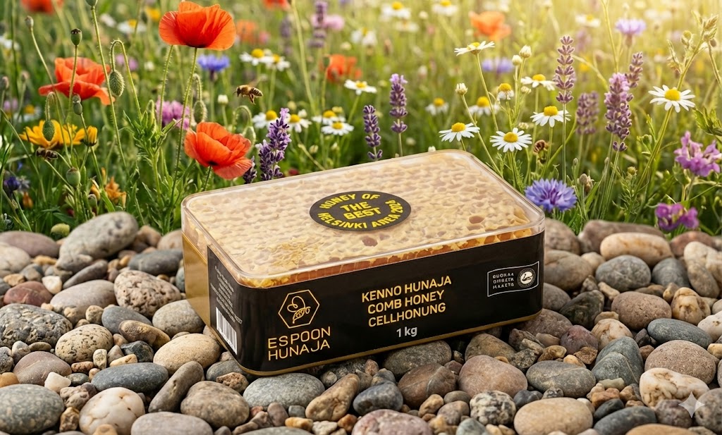 Espoon Kennohunaja – Hunajaa mehiläisten omassa pakkauksessa.