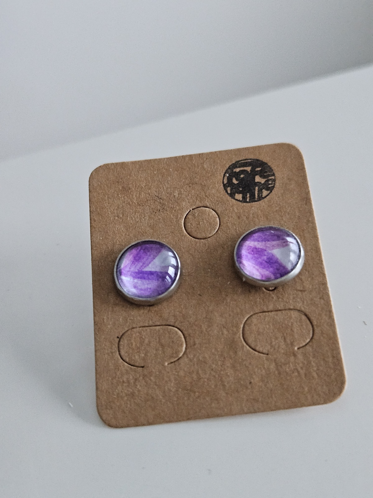 Lasin alla pieni pala vesivärimaalauksesta. Jokainen koru on uniikki. Korun halkaisija 10 mm. Materiaali kirurginteräs.