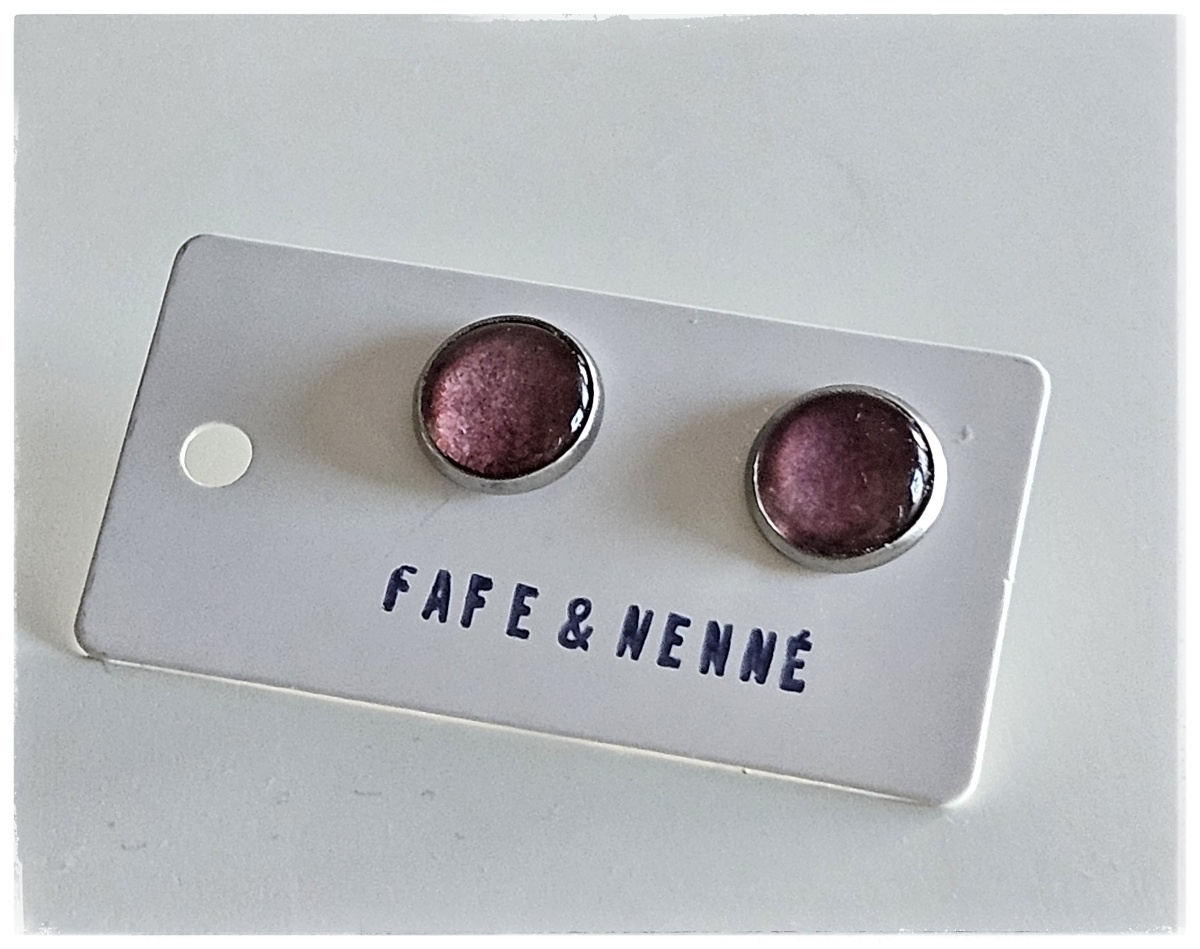 Lasin alla pieni yksivärinen pala taidegrafiikkaa. Jokainen koru on uniikki. Korun halkaisija 10 mm. Materiaali kirurginteräs.