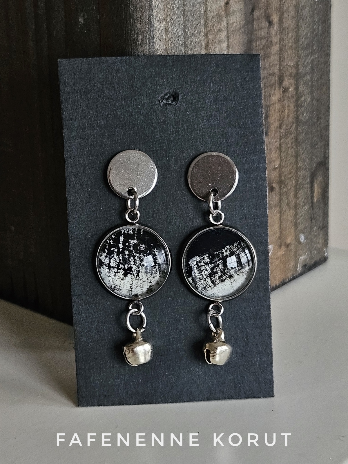 Upeat uniikit korut, joissa lasin alla taidegrafiikkaa. Koko korun korkeus n 4,3 cm. Metalliosat kirurginterästä.