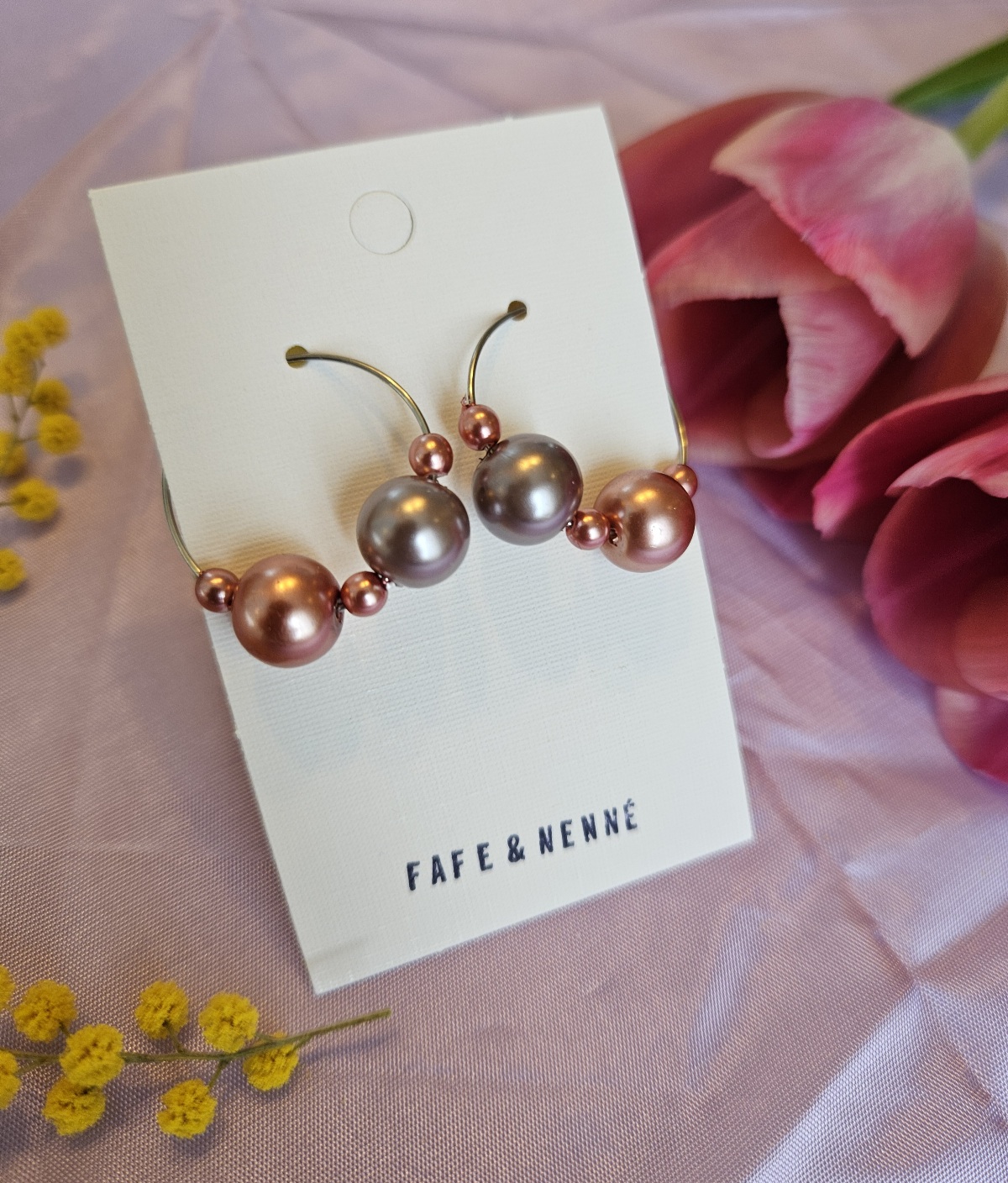 Hehkua päivään yksinkertaisen kauniilla korvakorulla. Rengas kirurginterästä ja helmet helmiäislasia. Renkaan koko 25mm.