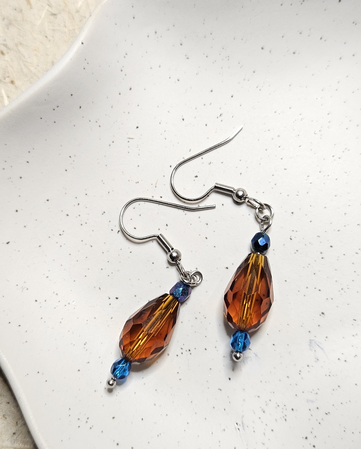 Lasihelmikoru koukkukiinnityksellä. Korun korkeus 5,2 cm. Koukku allergisoimatonta kirurginterästä.