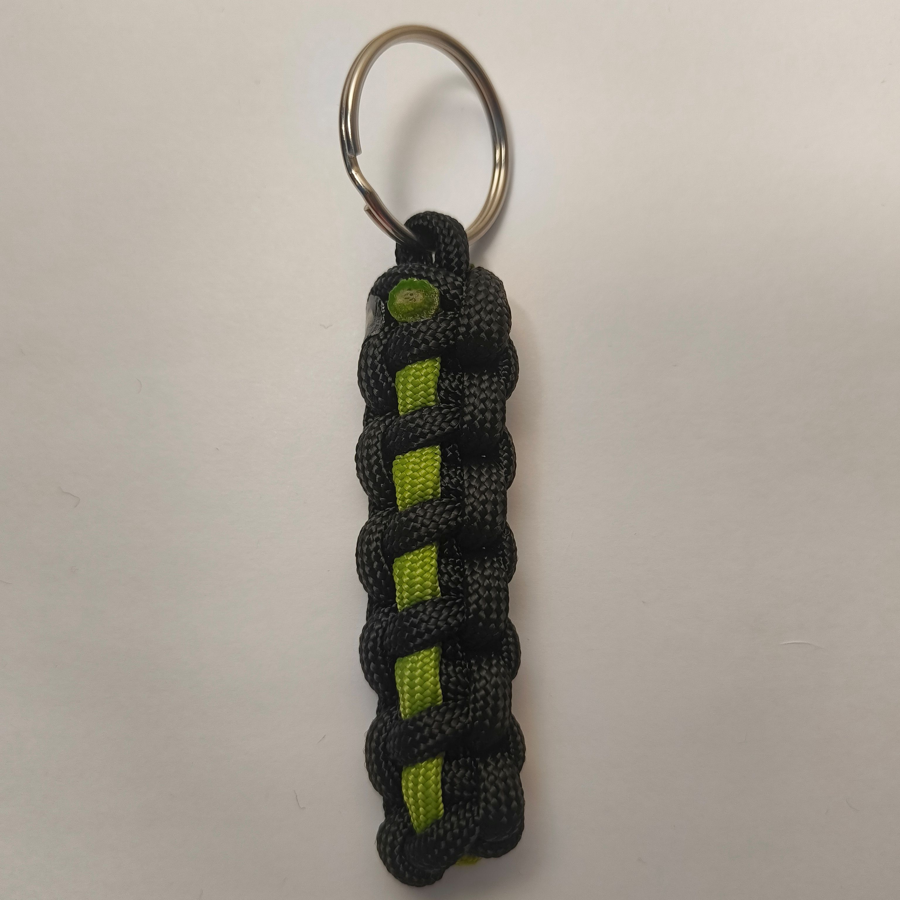 Tee arjen tavaroistasi persoonallisia. Tämä käsintehty paracord-avaimenperä on valmistettu 550 Type III-paracordista ja viimeistelty hopeanvärisellä avainrenkaalla (halkaisija 2 cm). Kompakti, kevyt ja tyylikäs – se näyttää hyvältä missä tahansa sen kiinnität.