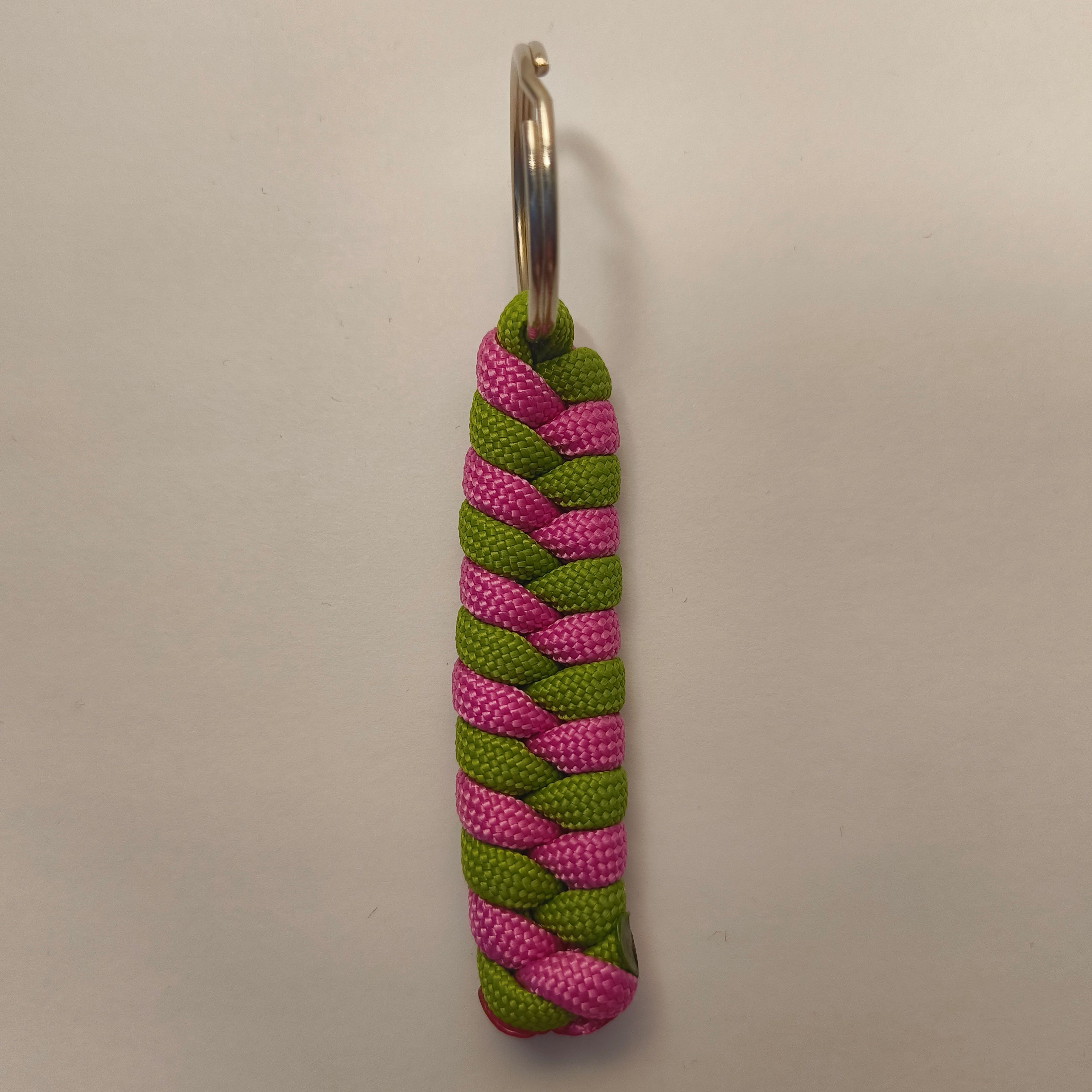 Tee arjen tavaroistasi persoonallisia. Tämä käsintehty paracord-avaimenperä on valmistettu 550 Type III-paracordista ja viimeistelty hopeanvärisellä avainrenkaalla (halkaisija 2 cm). Kompakti, kevyt ja tyylikäs – se näyttää hyvältä missä tahansa sen kiinnität.