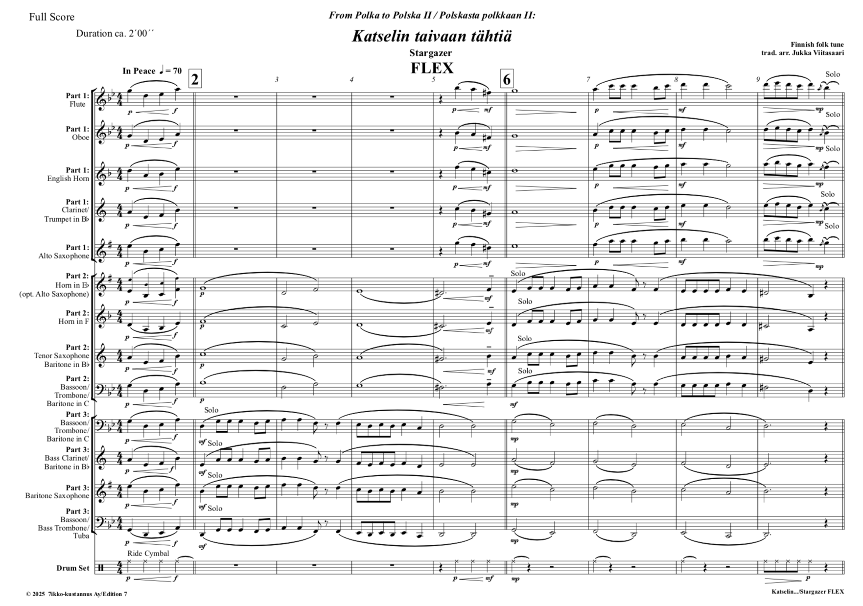 I: Wind Breezes bent the Winds/Metsän puita tuuli tuudittaa (polska) 1´30´´ II: Stagazer/Katselin taivaan tähtiä (folksong) 2´00´´ III Cantor Henry´s Polka/Lukkari-Heikin polkka 1´10´´